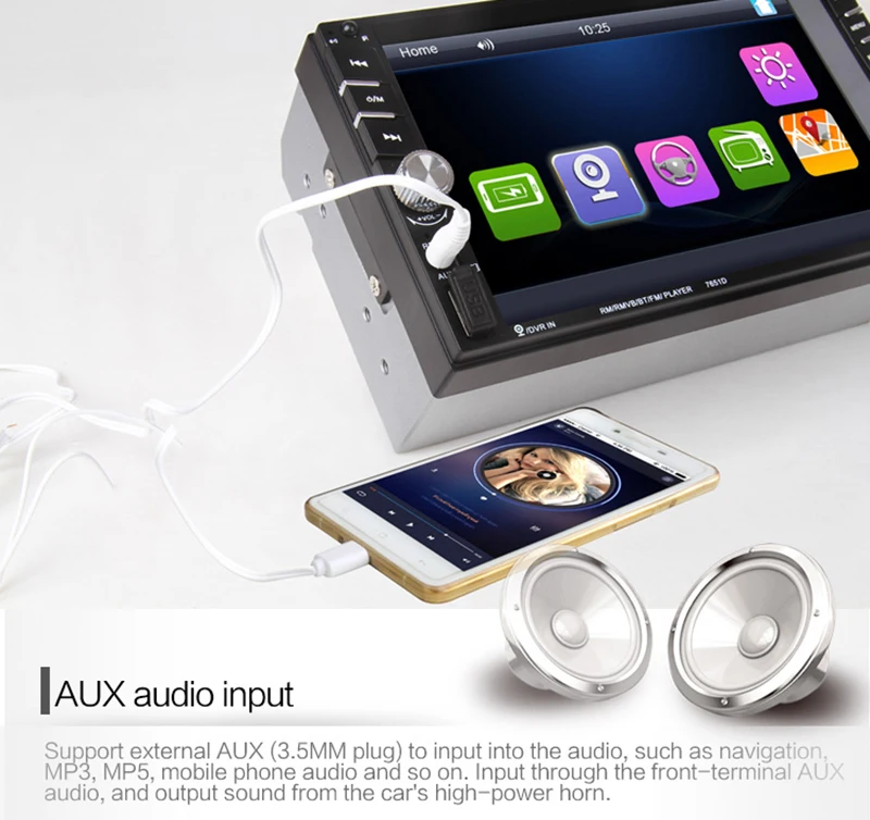 - AUX audio input interface can be connected with MP3, GPS, mobile phone, Walkman and other audio input.