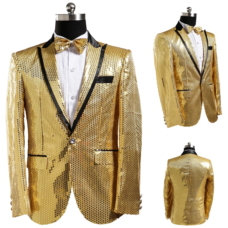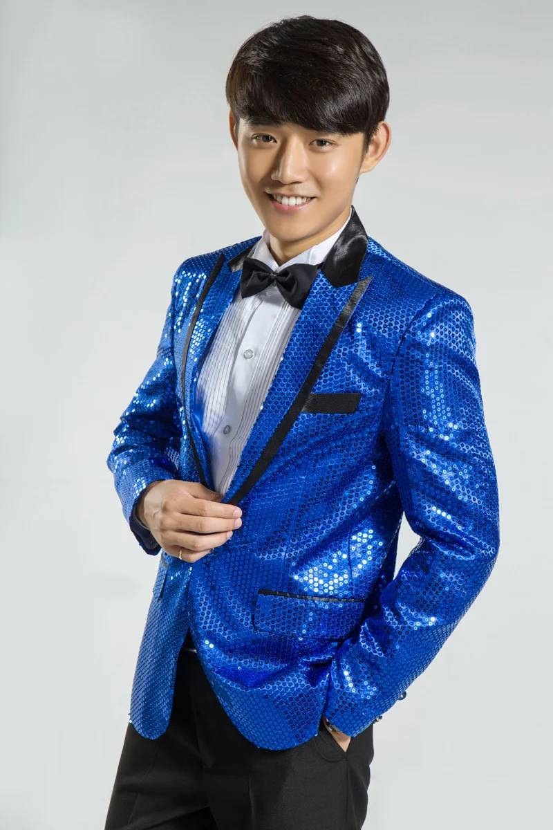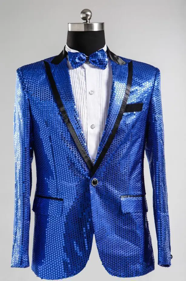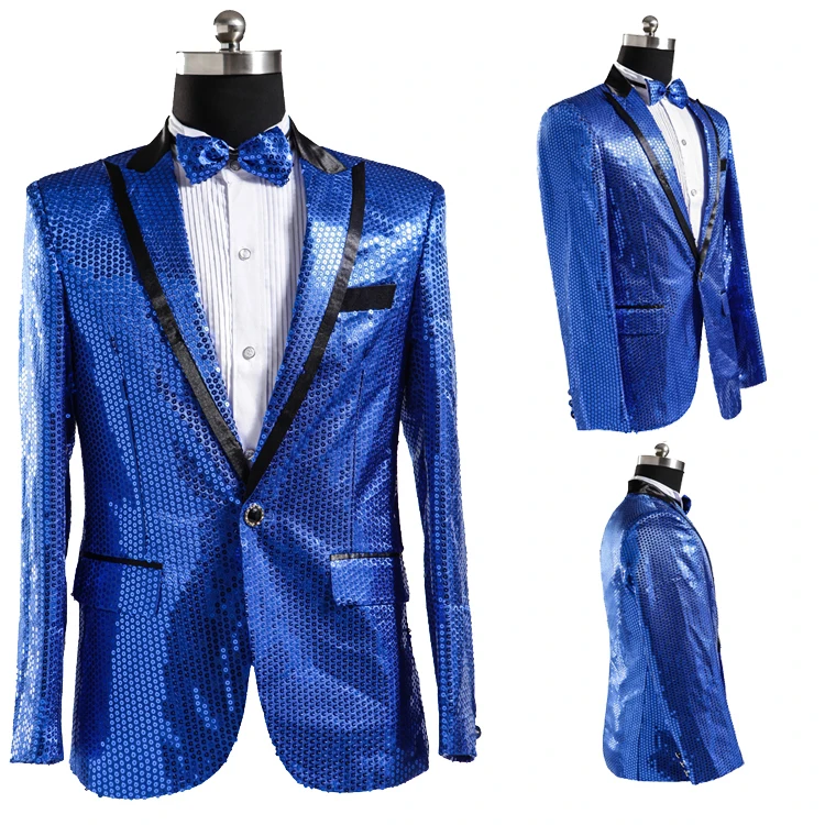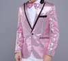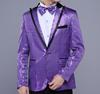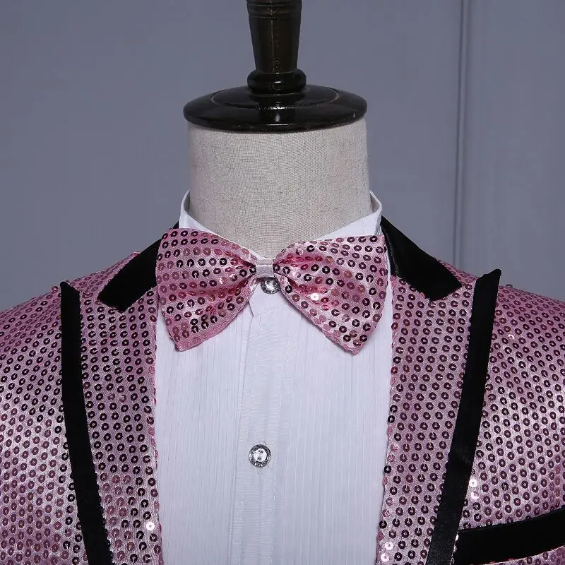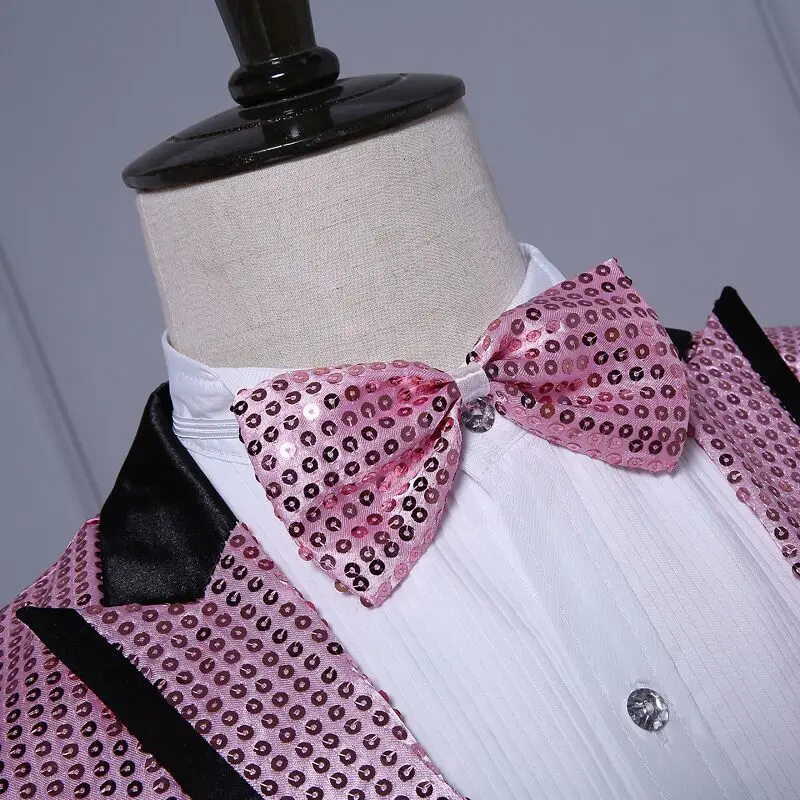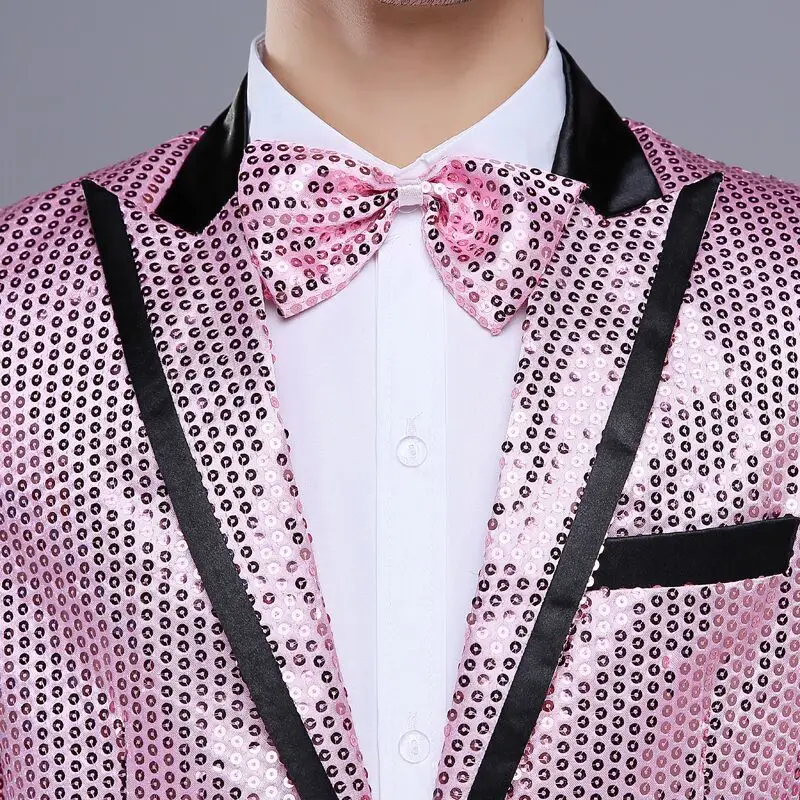 New 7 colors Mens Suit Jacket With Bow Tie Gold White Red Blue Pink Purple Sequin Costume Singer Wedding Grooms Shiny Blazer