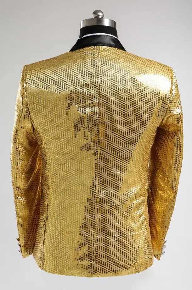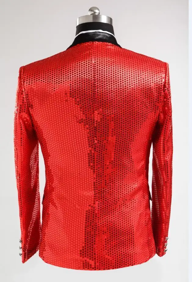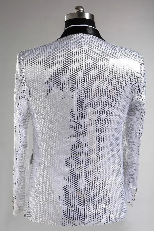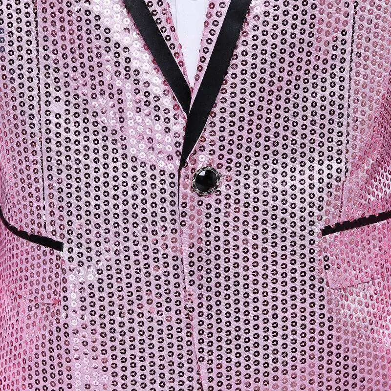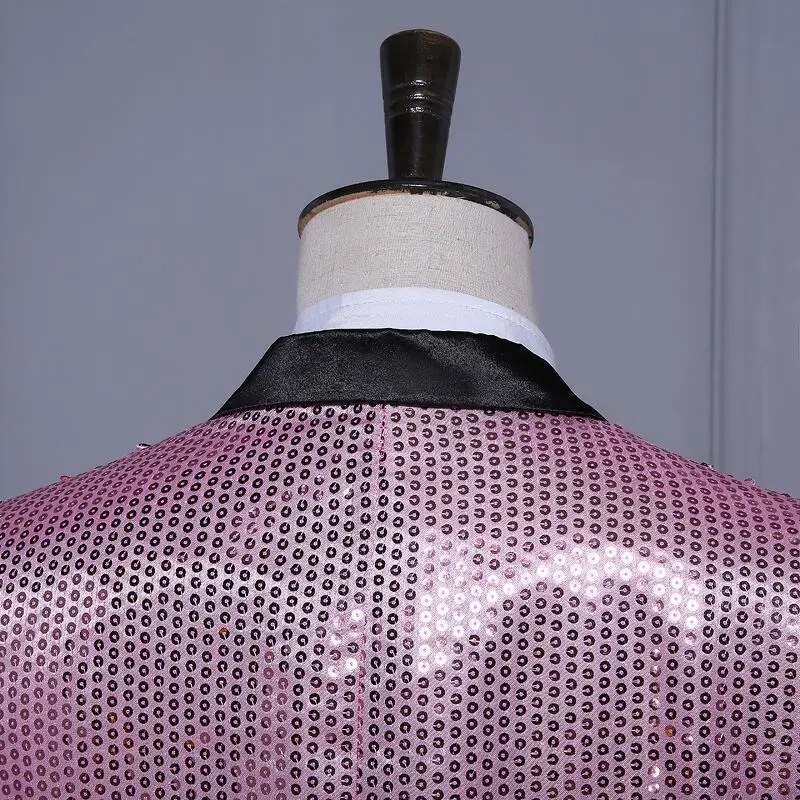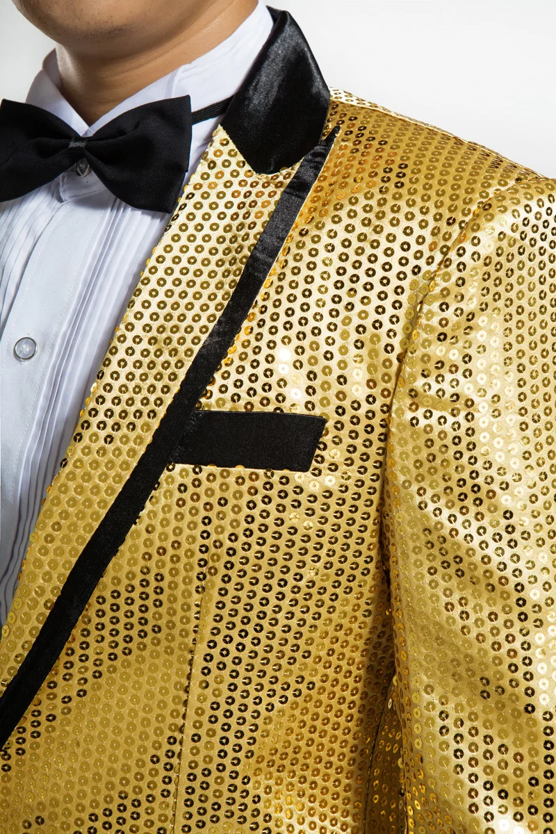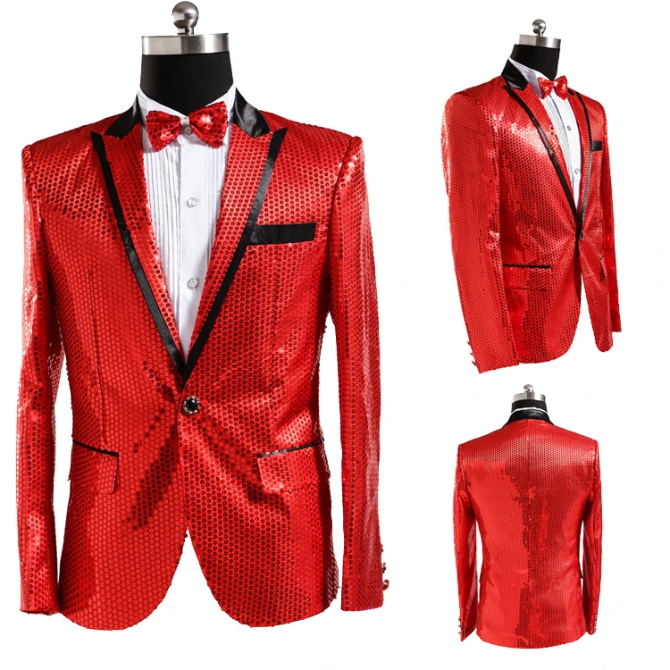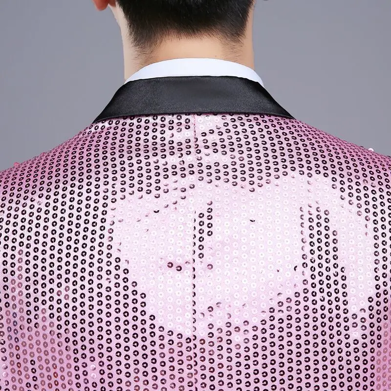 New 7 colors Mens Suit Jacket With Bow Tie Gold White Red Blue Pink Purple Sequin Costume Singer Wedding Grooms Shiny Blazer