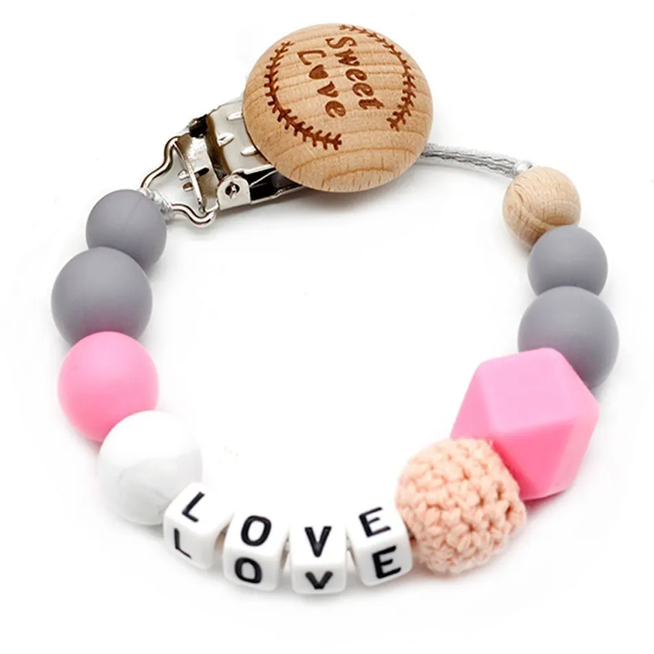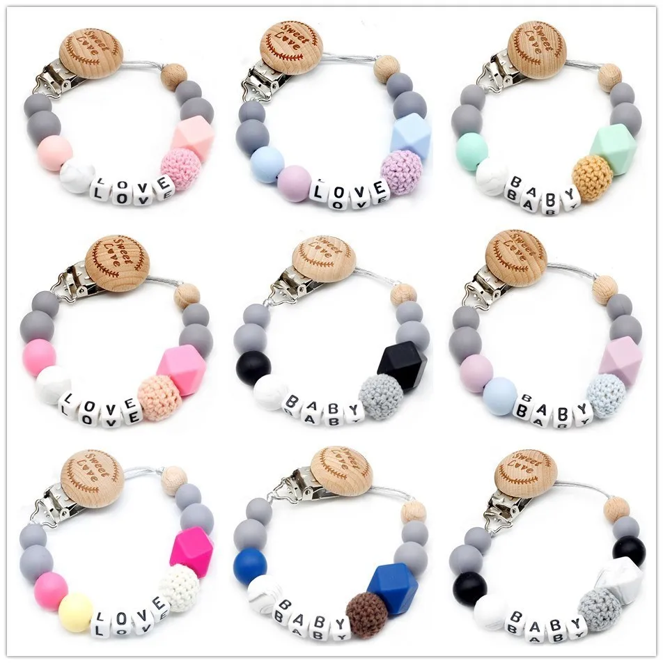 New 9 styles DIY holder personalized name silicone pacifier clip baby pacifier chain teething pacifier chew toy baby dummy clips