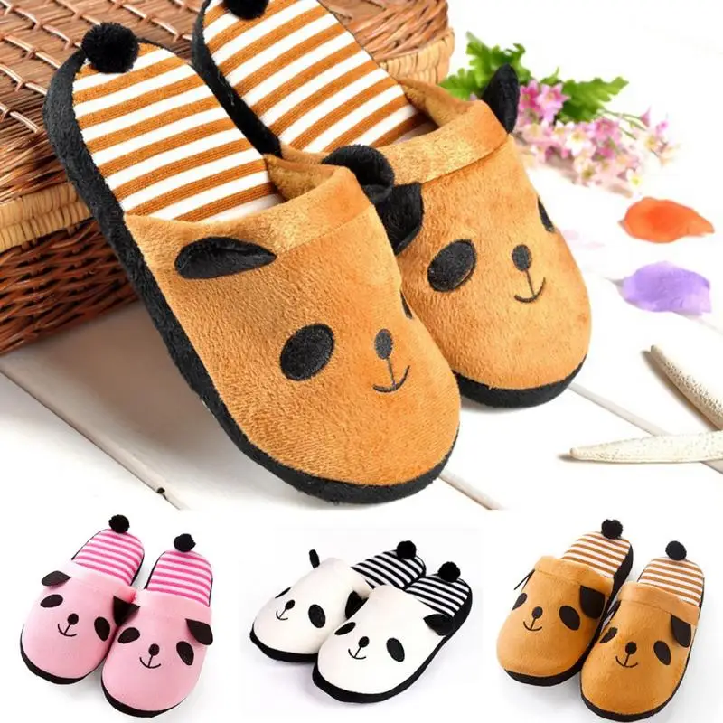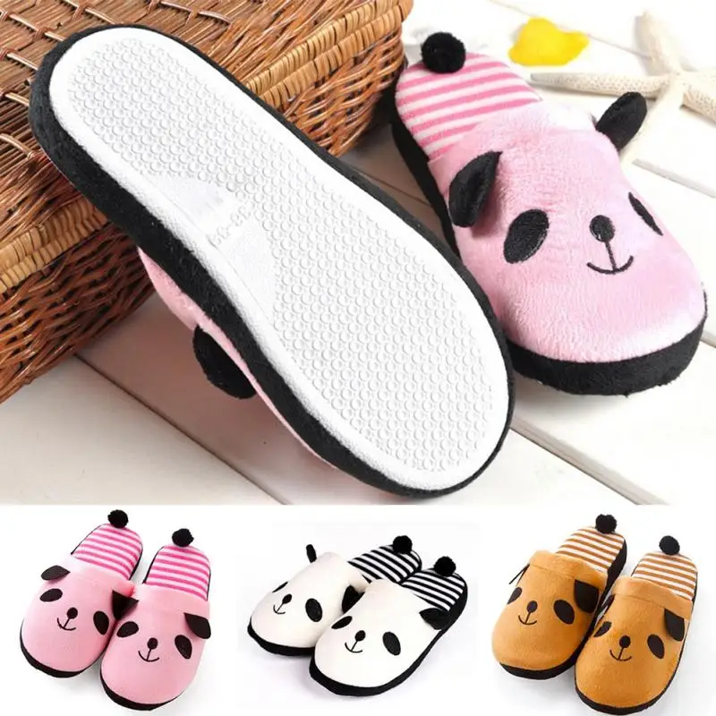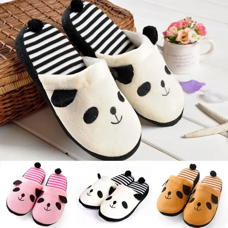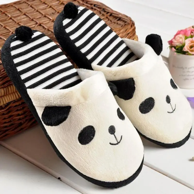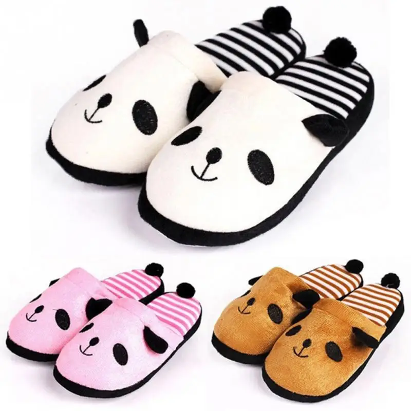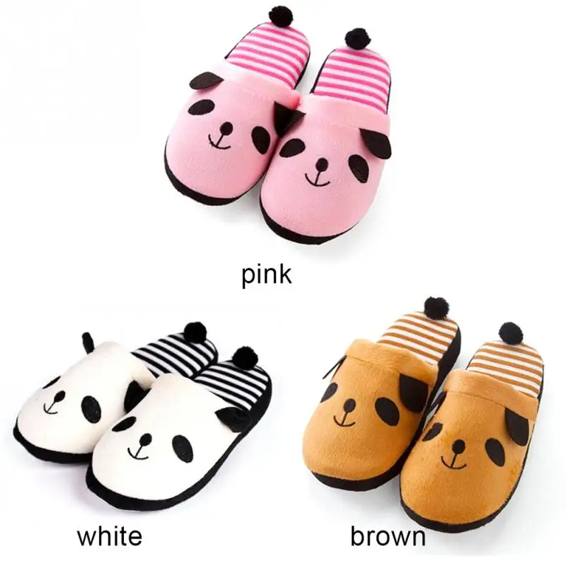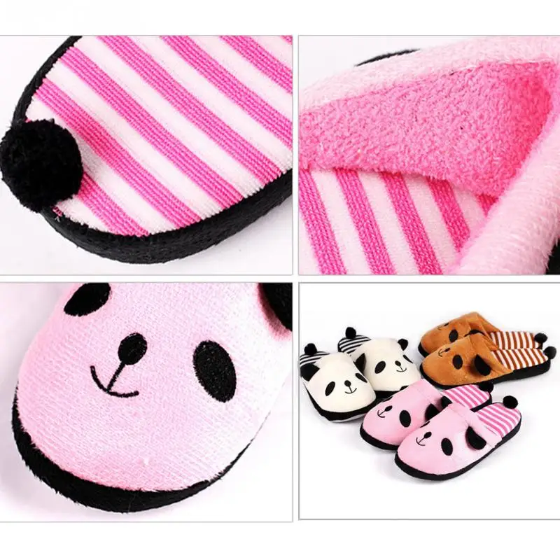 New Adorable Fluffy Ladies Autumn Winter Warm Plush Anti-slip Panda Tail Women Slippers Cute Coral Soft Home Slippers