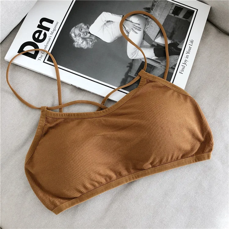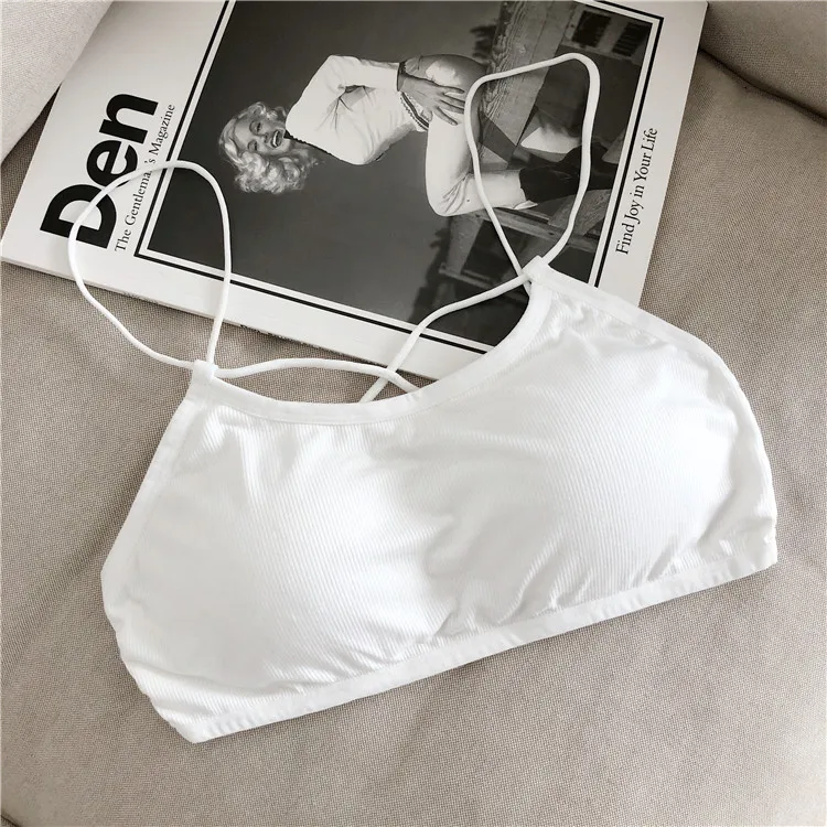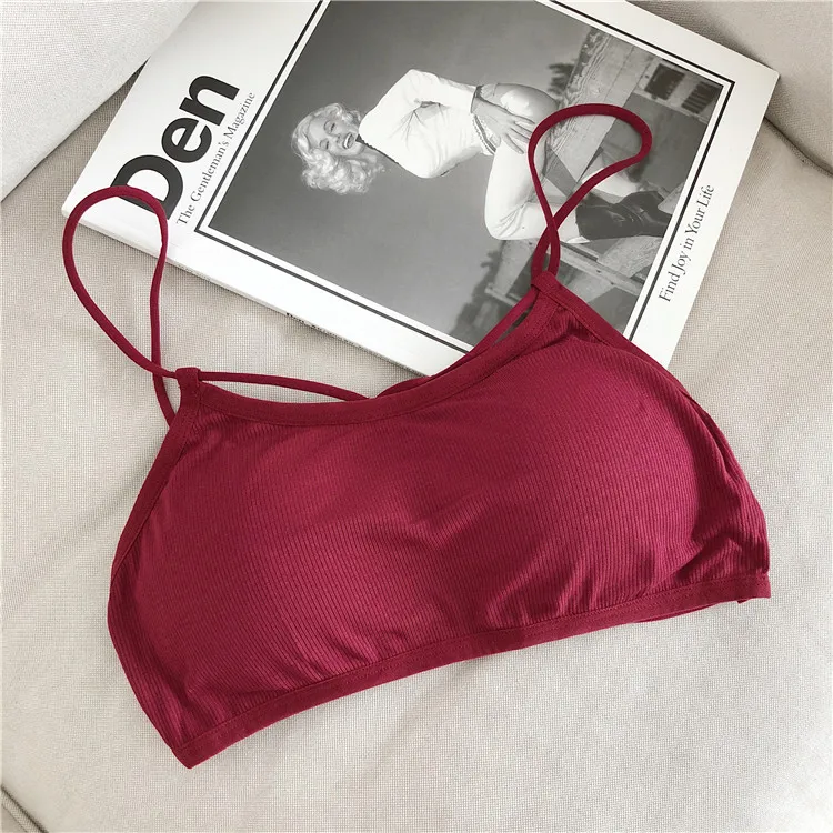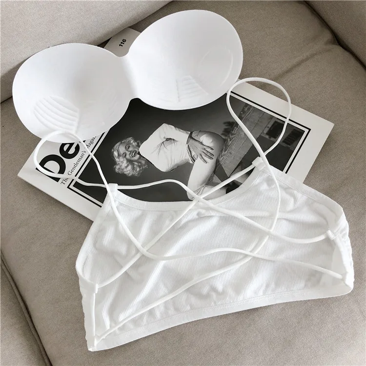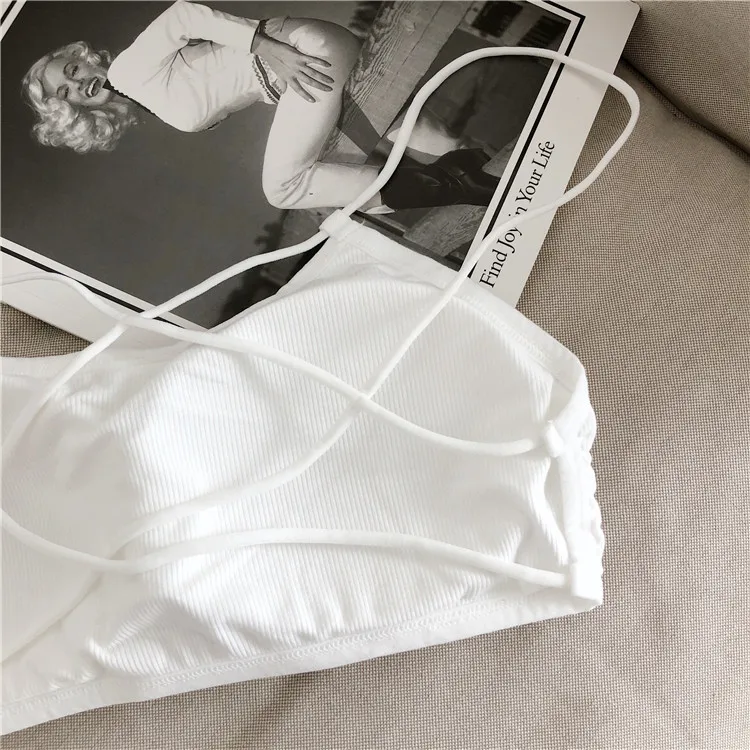 New Arrival 4 Colors Women Solid Adjustable Strap Camisole Nothing Steel Ring Bra Bandage Cross Slim Sexy Tube Tops Hot T88905F