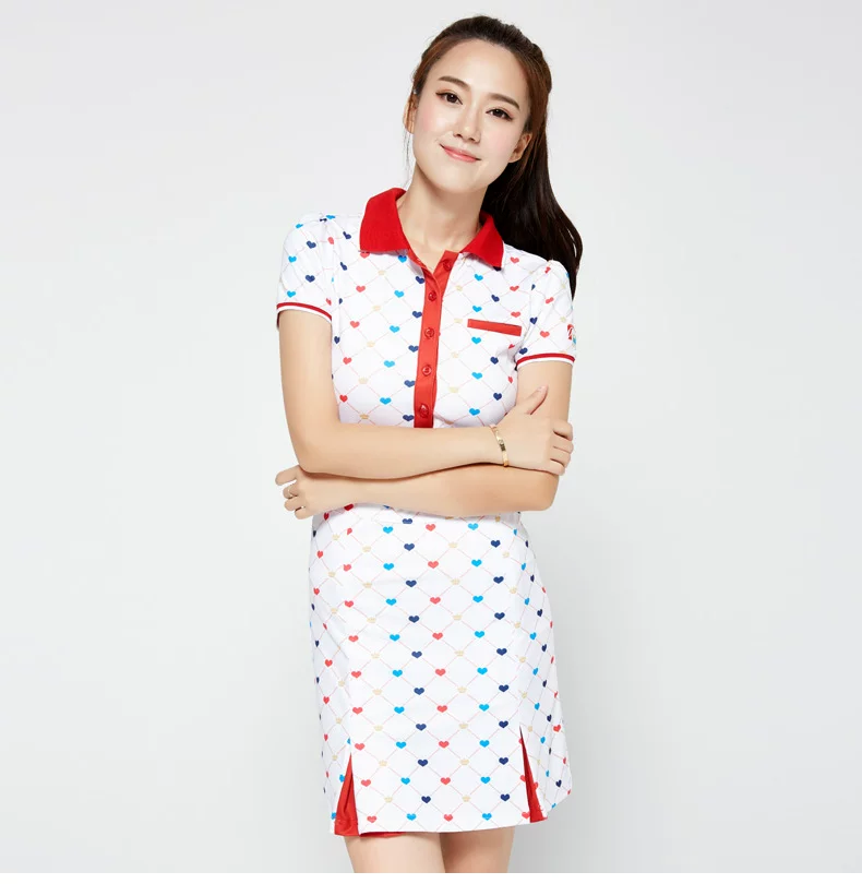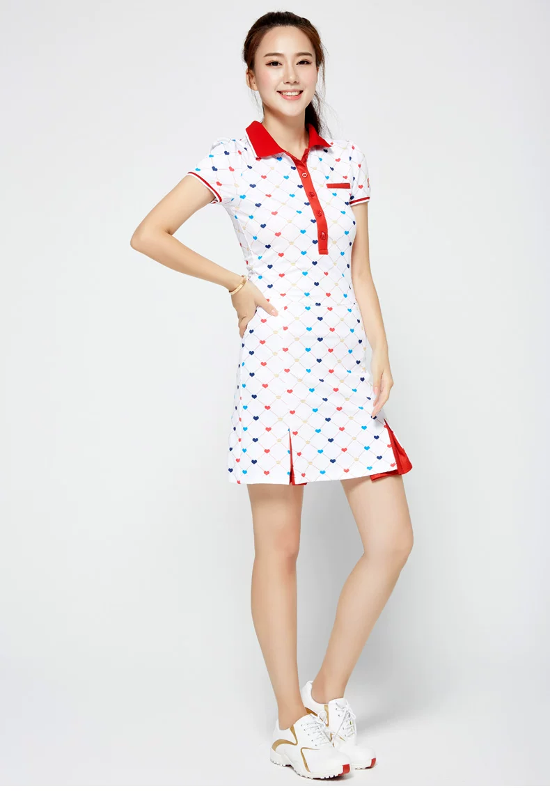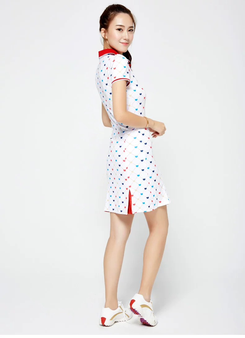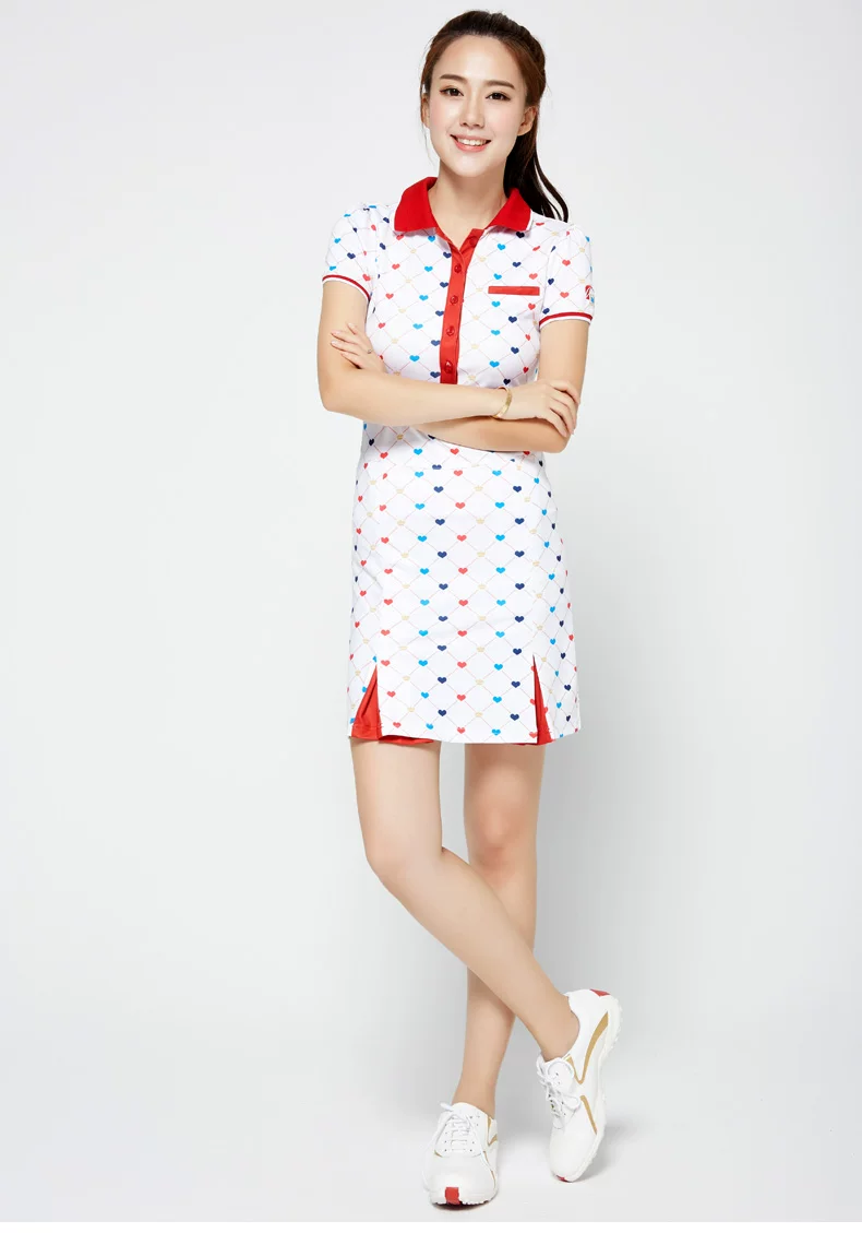 New Arrival Clothes Women Printing Dress S-XL Fitness Lady Tennis Slim Sportswear White Love Moisture Wicking Golf/Tennis Dress