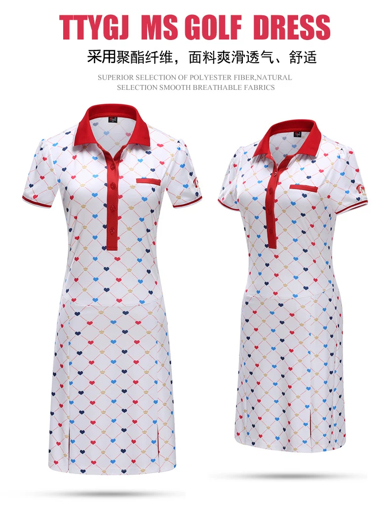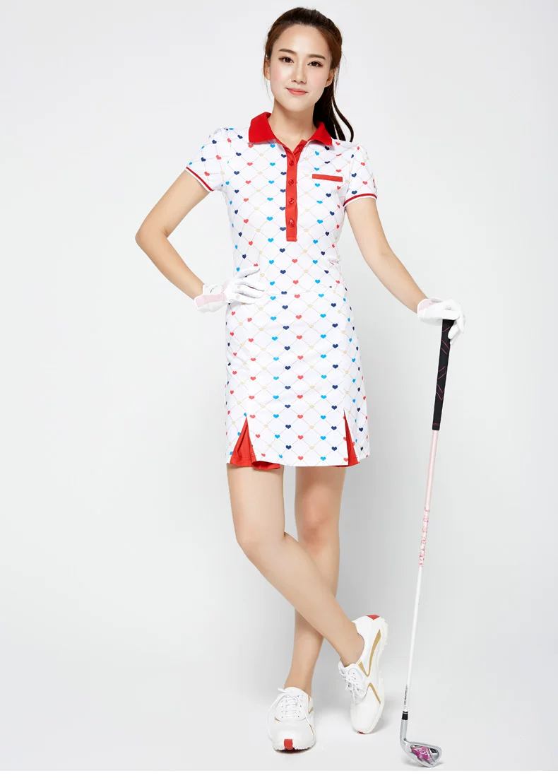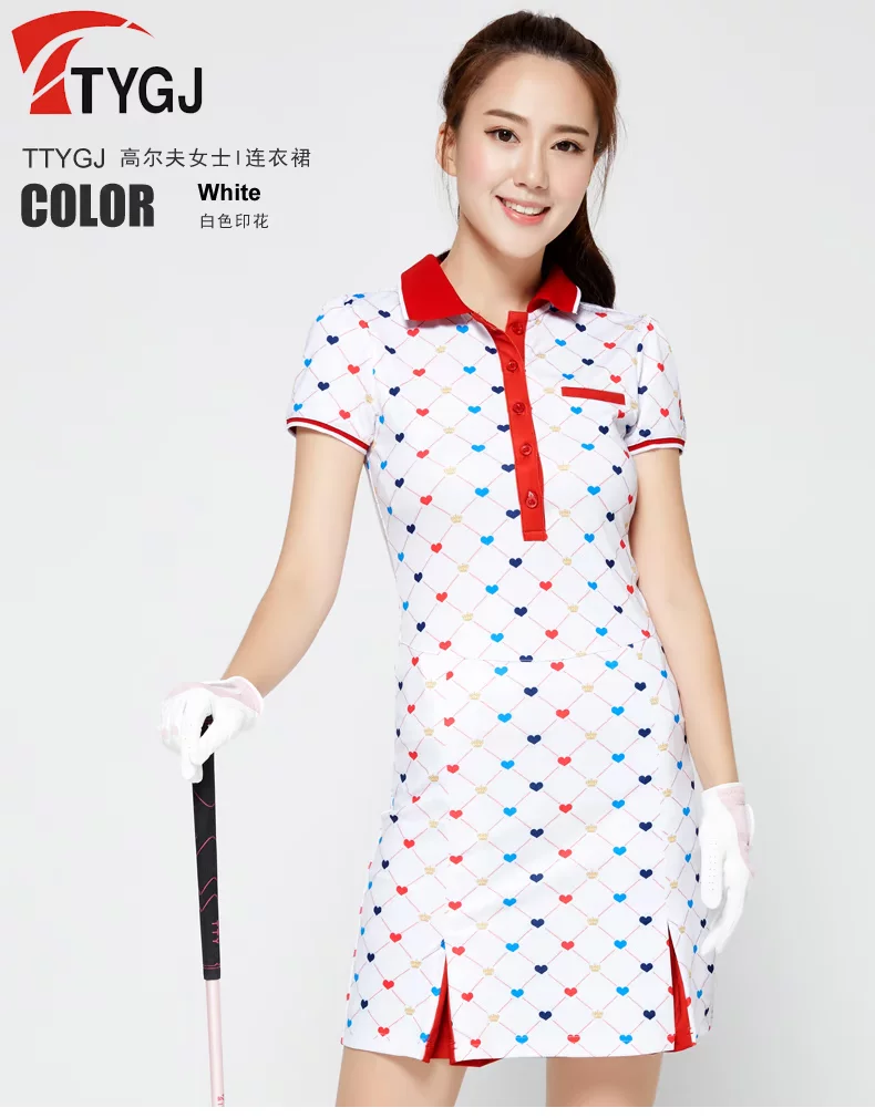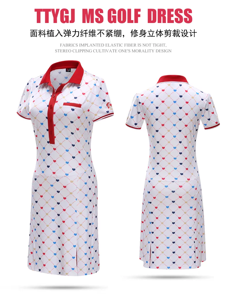 New Arrival Clothes Women Printing Dress S-XL Fitness Lady Tennis Slim Sportswear White Love Moisture Wicking Golf/Tennis Dress