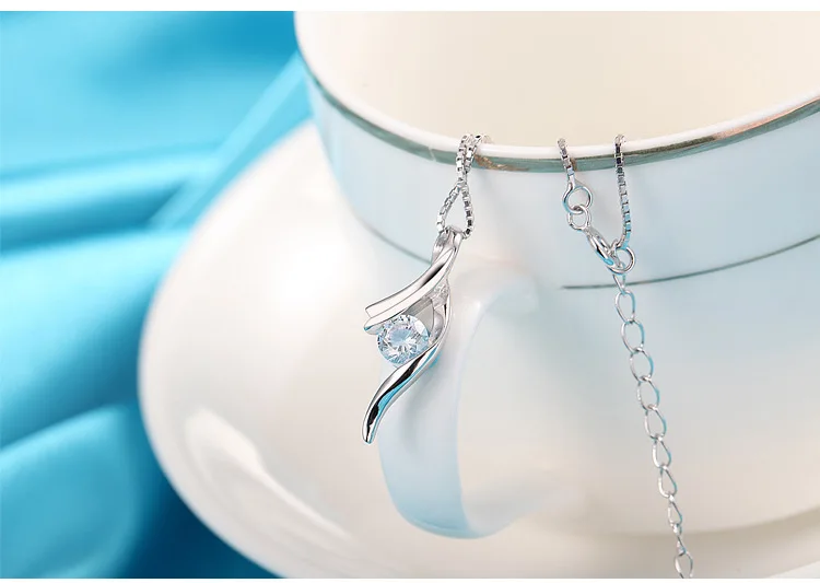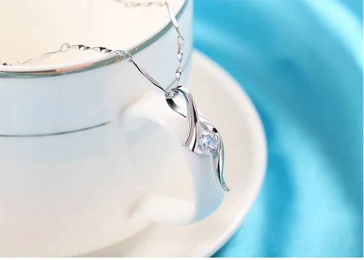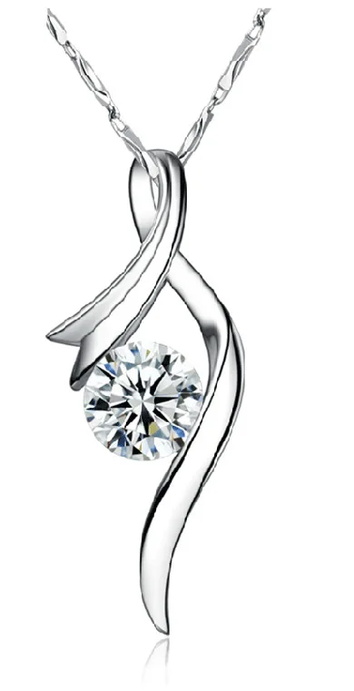 New Arrival Europe Style Women Girl Gift Cubic Zircon Pendant Necklace 925 Sterling Silver Chain Jewelry Free Shipping
