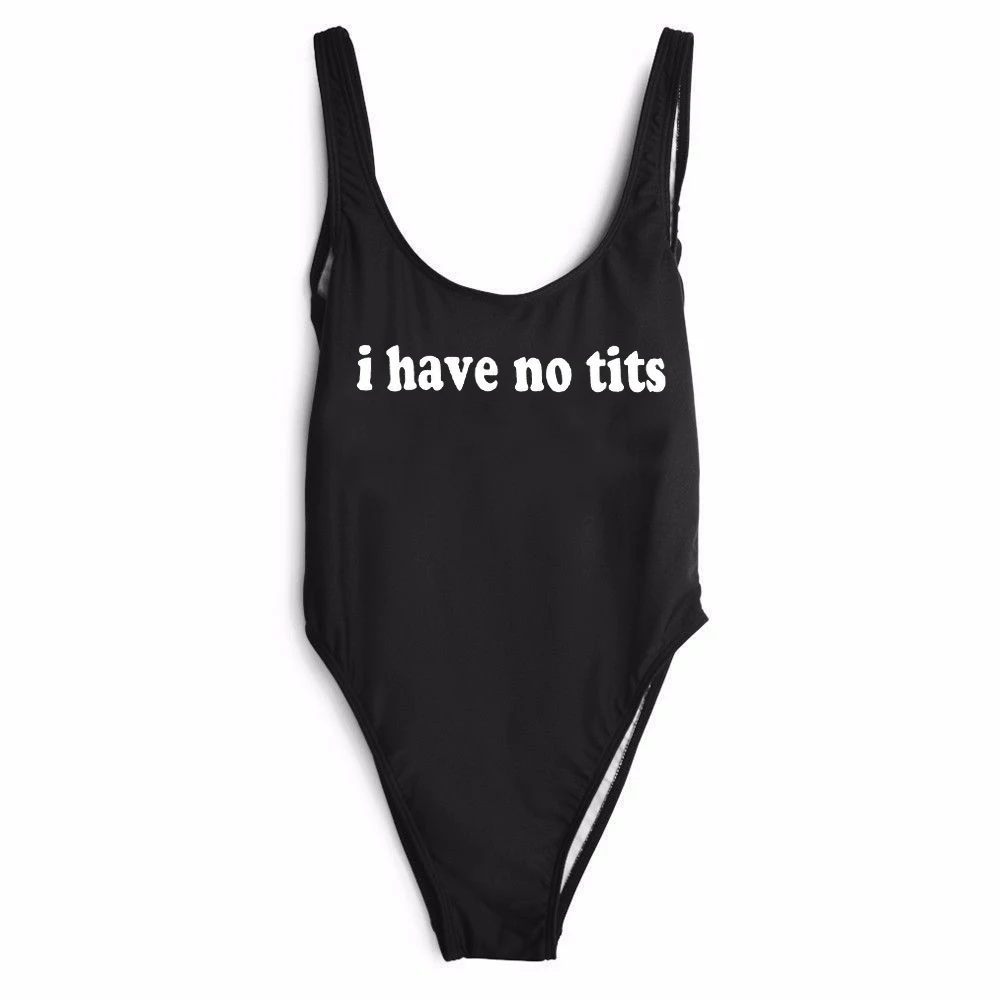 new arrival fashion summer bodysuit “I HAVE NO TITS” funny letter print sexy one-piece bathing suit high cut backless jumpsuit