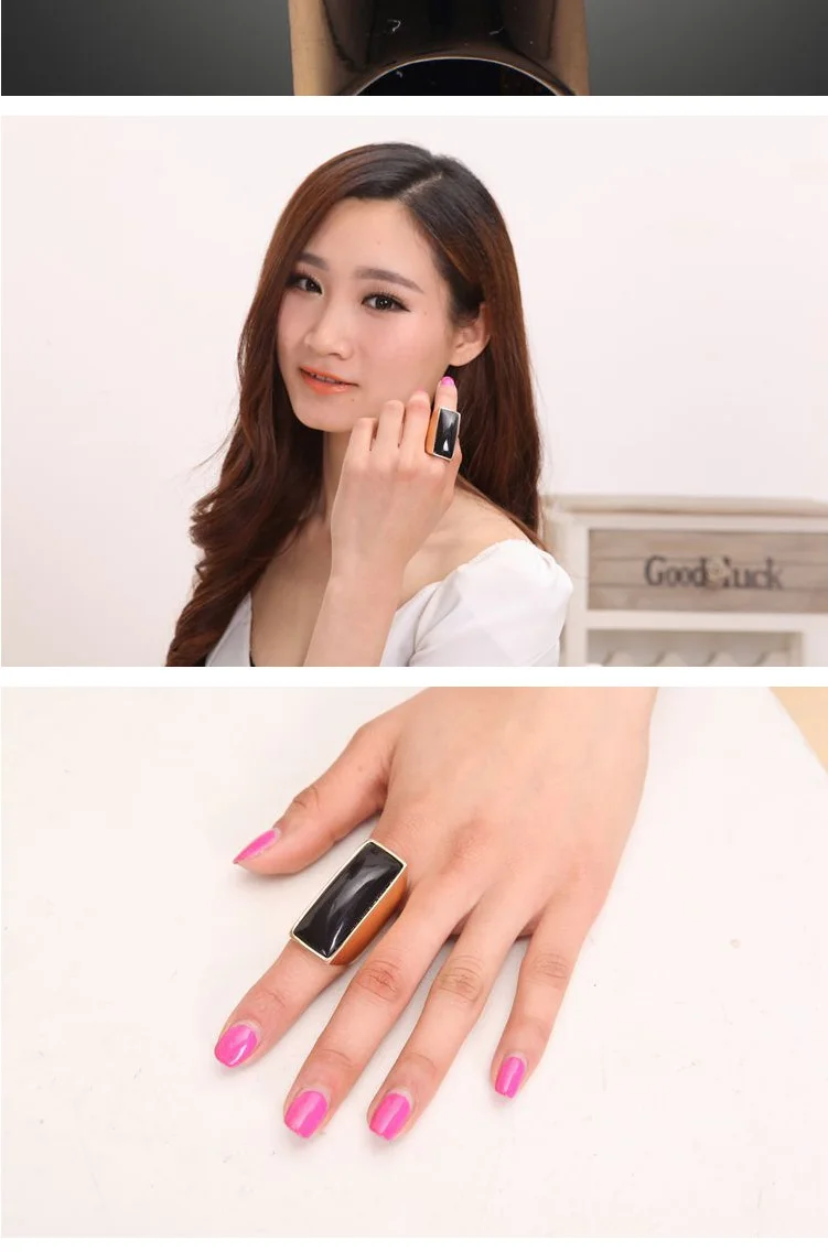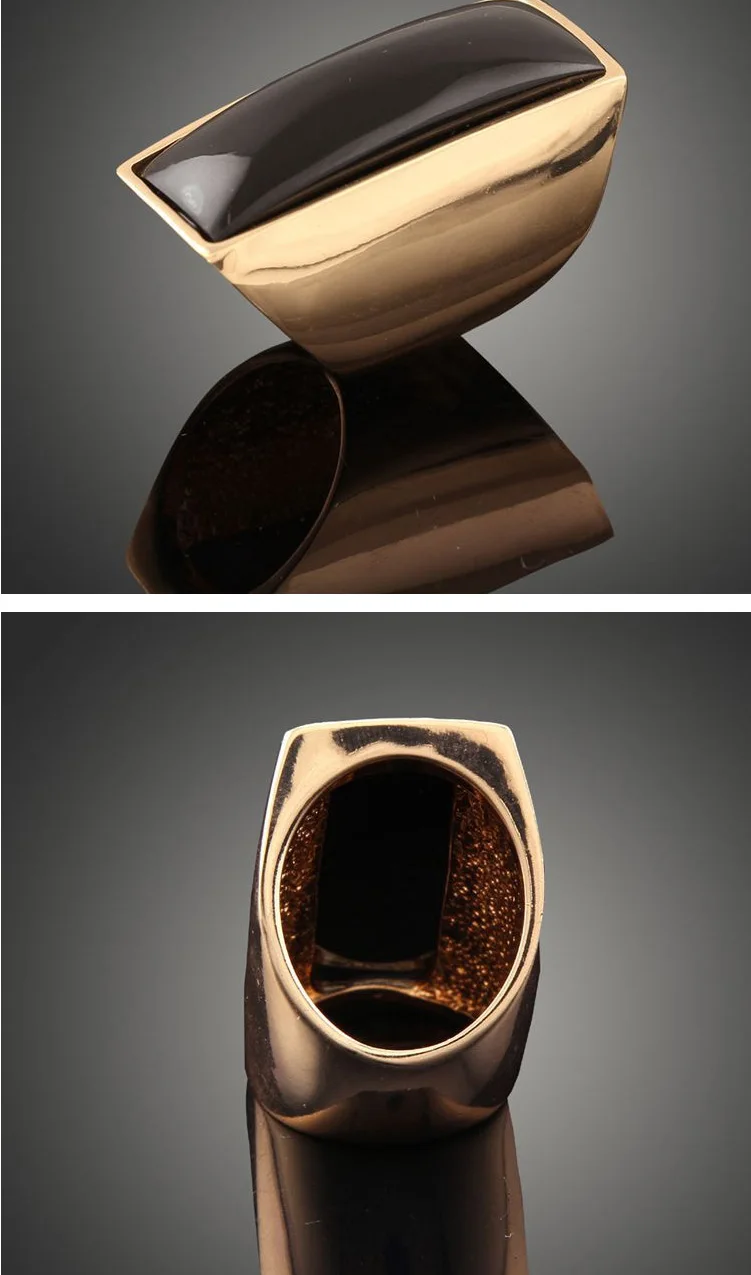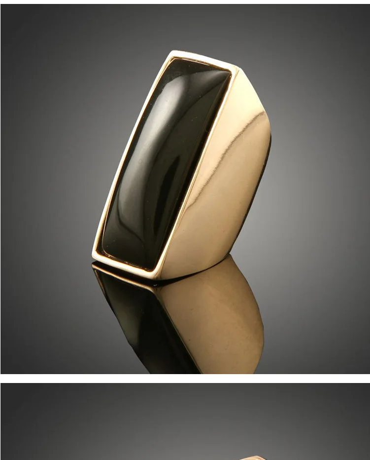 New Arrival Fashion Wide Black Imitation Gem Stone Gold Color Men Women Finger Rings Wedding Jewelry