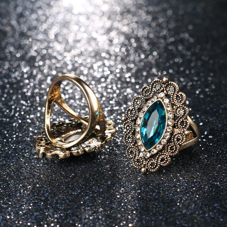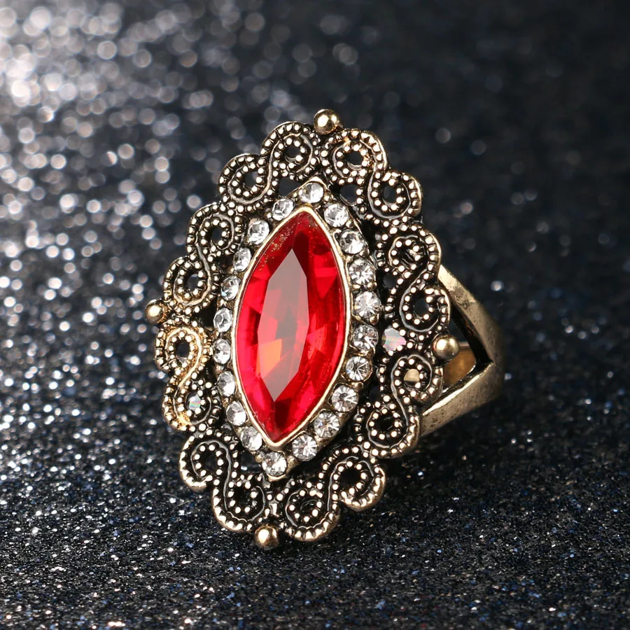 Name:New Arrival Retro Turkish Finger Rings For Party Women Blue Red Crystal Flower Design Vintage Ring Anel Jewelry