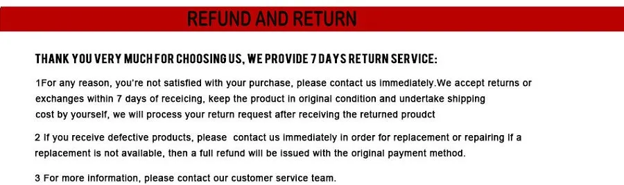 Your satisfaction is our #1 priority. Therefore, you can request a refund or reshipment for ordered products if: