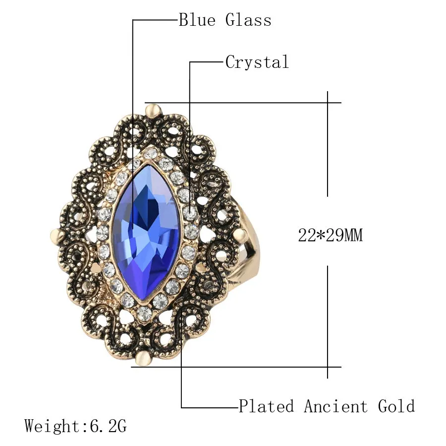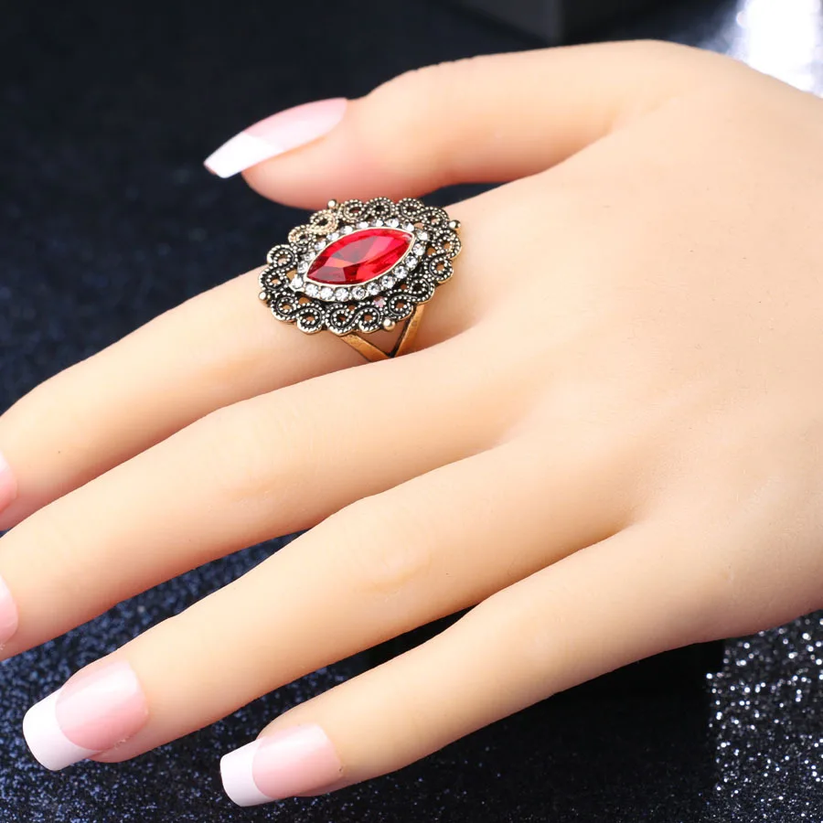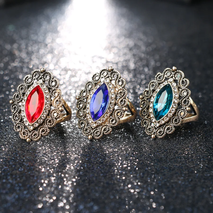 Name:New Arrival Retro Turkish Finger Rings For Party Women Blue Red Crystal Flower Design Vintage Ring Anel Jewelry