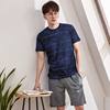 New Arrivals Plus Size M-3XL Summer Blue Print Tops & Gray Shorts for Men Pajama Sets Mens Two Piece Short Sleeve Sleepwear