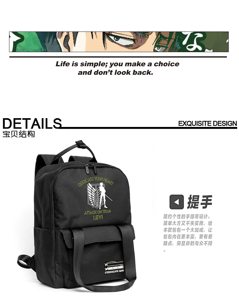 New Attack on Titan Backpack Anime Jiyuu no Tsubasa Eren Jaeger oxford Schoolbags Fashion Unisex Travel Bag