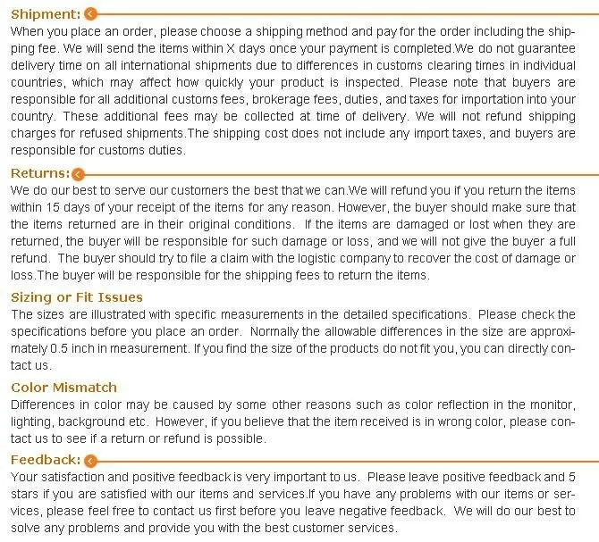 We are not responsible for any custom fees once the items have shipped. By purchasing our products, you consent that one or more packages may be shipped to you and may get custom fees when they arrive in your country.
