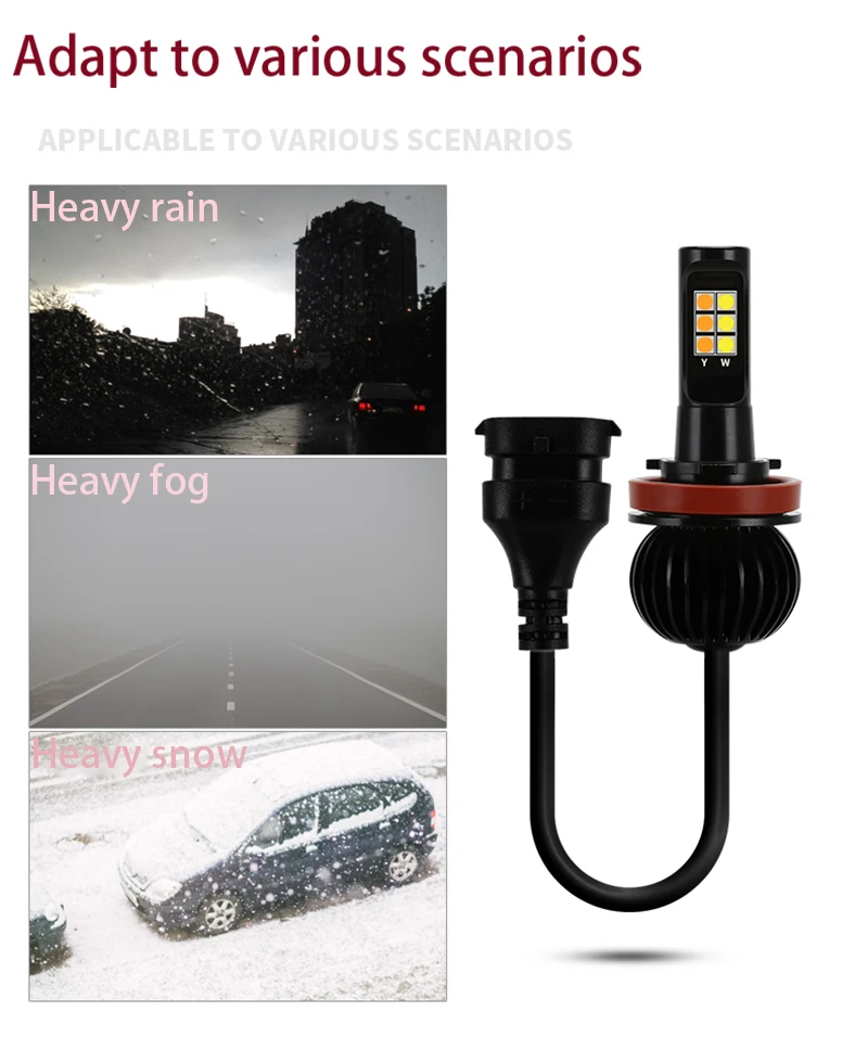 New Auto Front fog light bulbs double Color 20W H11 H3 H4 H7 9005 HB3 9006 HB4 880 H27 LED DRL lights white yellow blue ice red