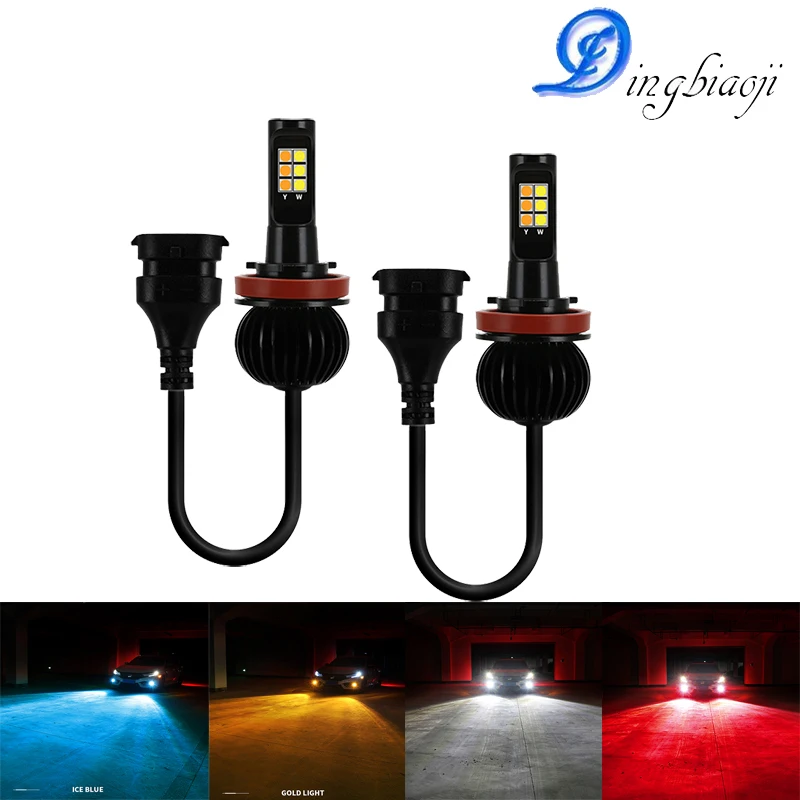 New Auto Front fog light bulbs double Color 20W H11 H3 H4 H7 9005 HB3 9006 HB4 880/881 H27 LED DRL lights white yellow blue ice red