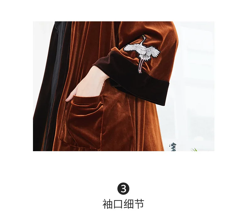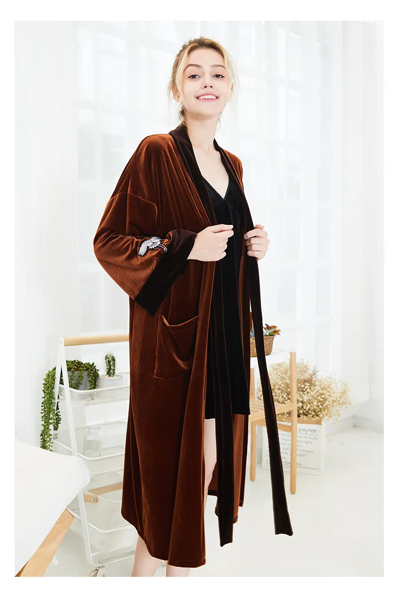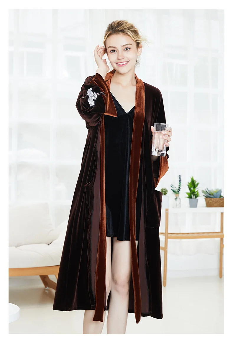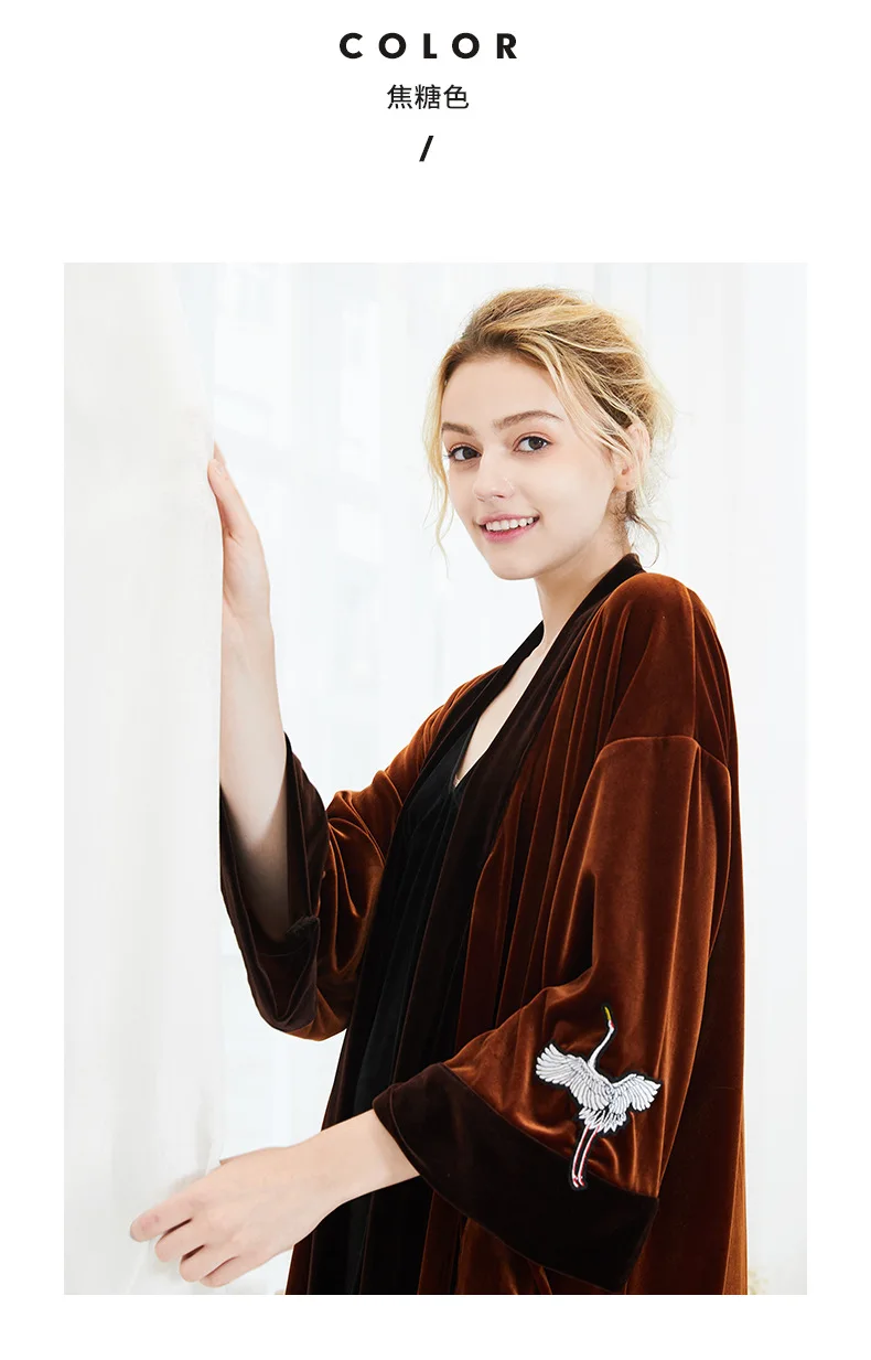 NEW Autumn Bride Velour Wedding Robe Kimono Couple Lovers Velvet Bathrobe Bathrobe Quality Embroidery Crane Home Dressing Gown