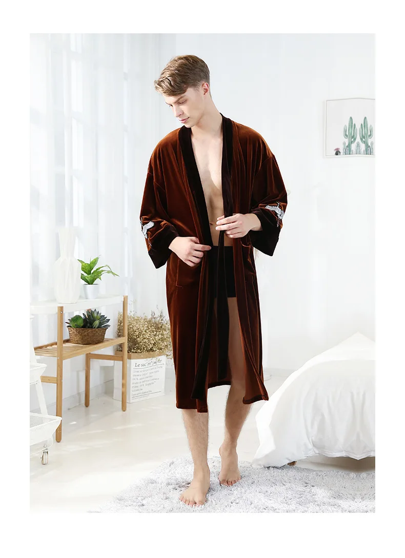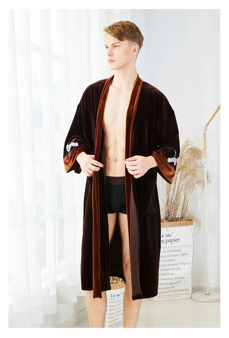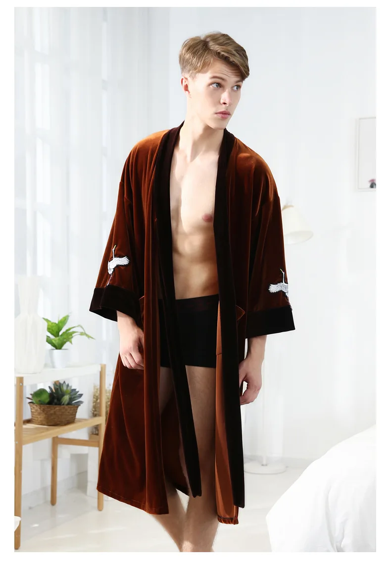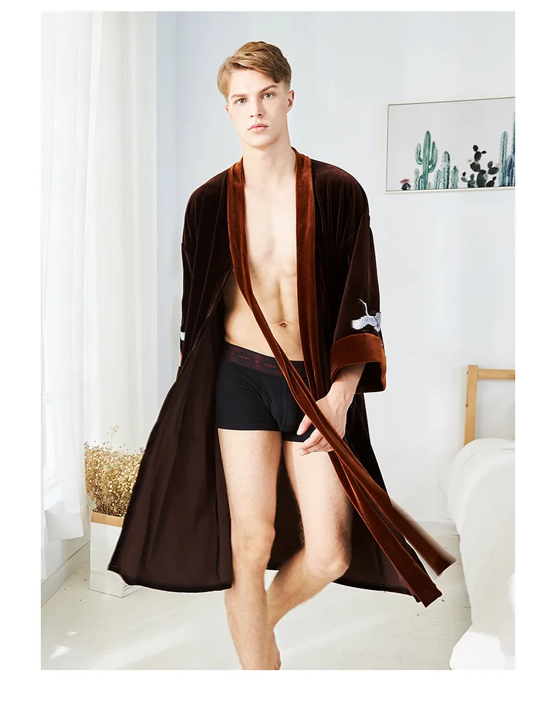 NEW Autumn Bride Velour Wedding Robe Kimono Couple Lovers Velvet Bathrobe Bathrobe Quality Embroidery Crane Home Dressing Gown