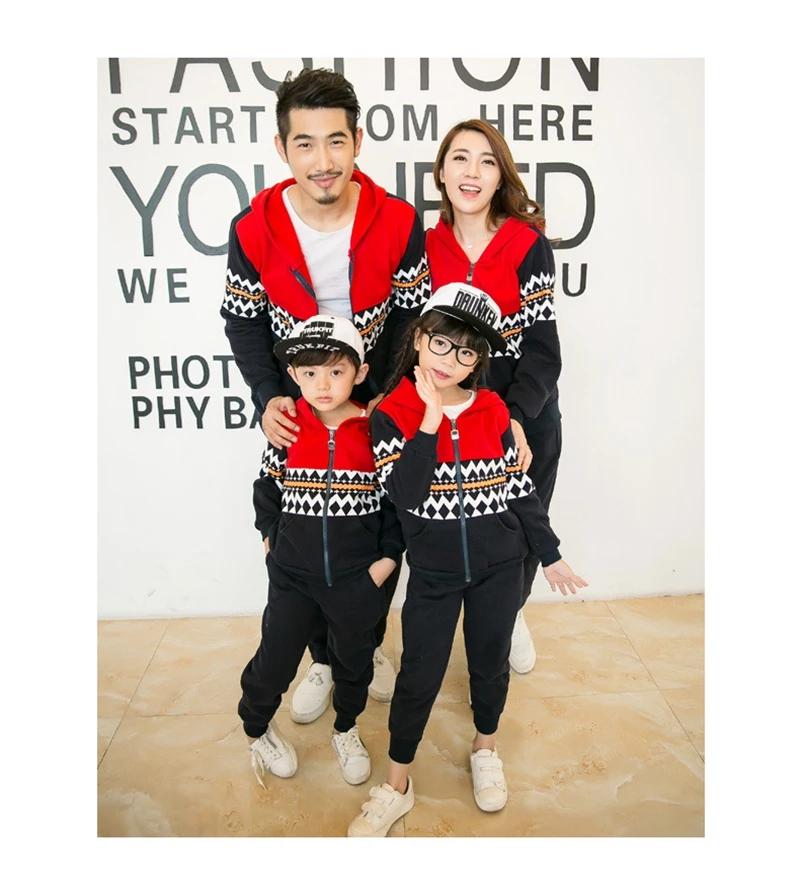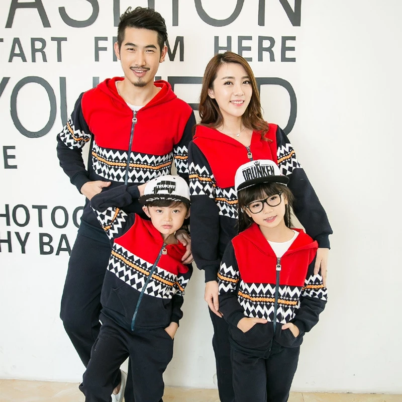 New Autumn Family Matching Outfits Korean Style Sweatshirt Zipper Striped Stitching Fashion Family Clothes Couple Clothes Set