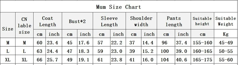 Product name:Family patchwork stripes coat+long trousers(the price is for one set)