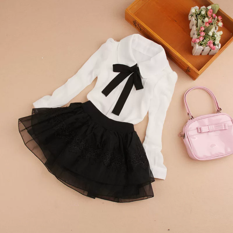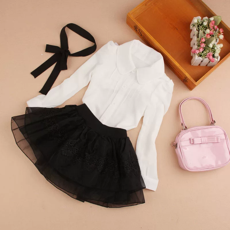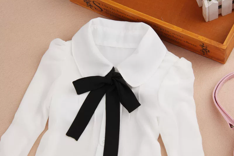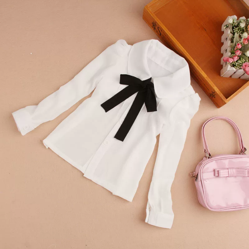 New Blouses For Girls Bow -tie Girl White Blouse Full Sleeve Blusas Nina Girls Blouse 6BL104
