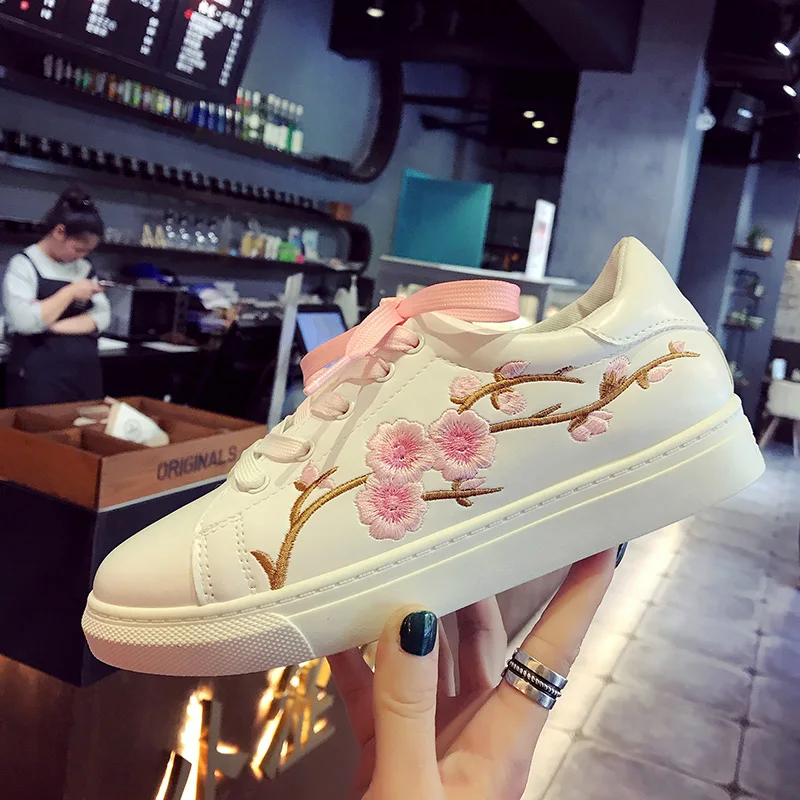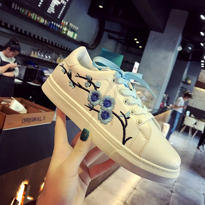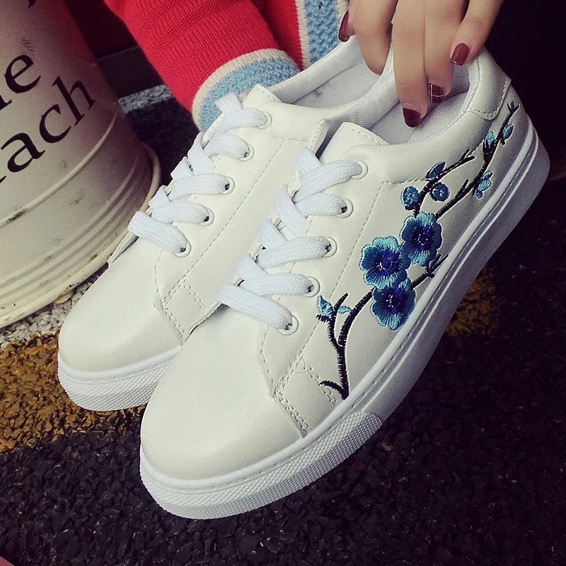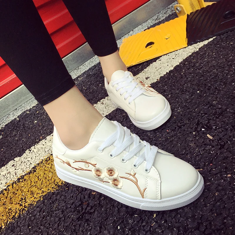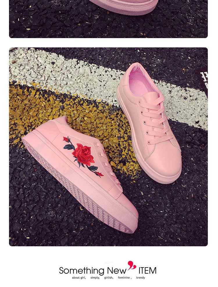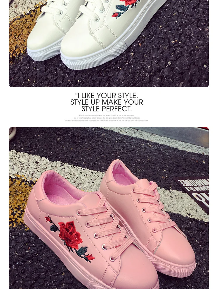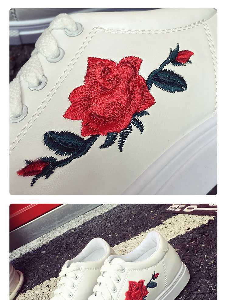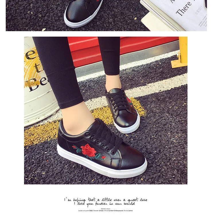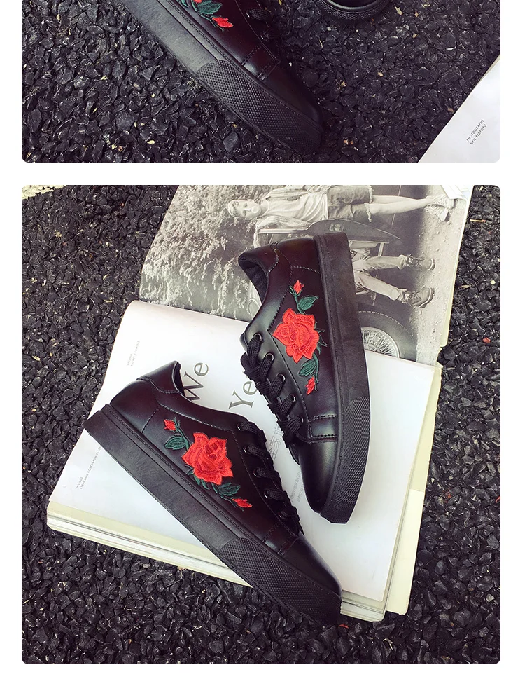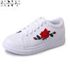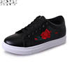 New Brand Designer Shoes Woman Fashion Rose Flower Embroider Black/white Leather Flats 2017 Women Platform Walking Shoes 192/30