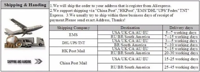 Packages from our warehouse in China will be shipped by ePacket or EMS depending on the weight and size of the product. Packages shipped from our US warehouse are shipped through USPS.