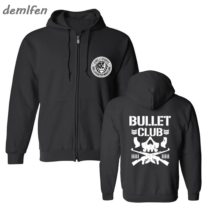 NEW Bullet Club New Japan Pro Wrestling Puroresu Njpw 2 Side Black Hoodie Men Zipper Fleece Sweatshirt Harajuku Streetwear