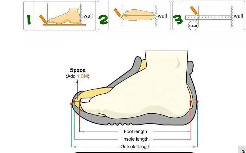 PLS KINDLY NOTE THAT THE LENGTH OF SHOES IS THE INNER LENGTH OF BABY`S FEET , PLS KINDLY MEATURE YOUR BABY`S FEET SIZE
