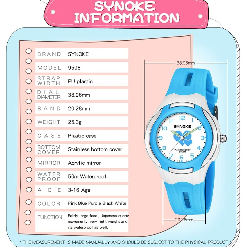 Material: High quality ABS plastic case, high quality PU plastic strap, thick hardened acrylic resin mirror, stainless steel bottom cover, stainless steel buckle.