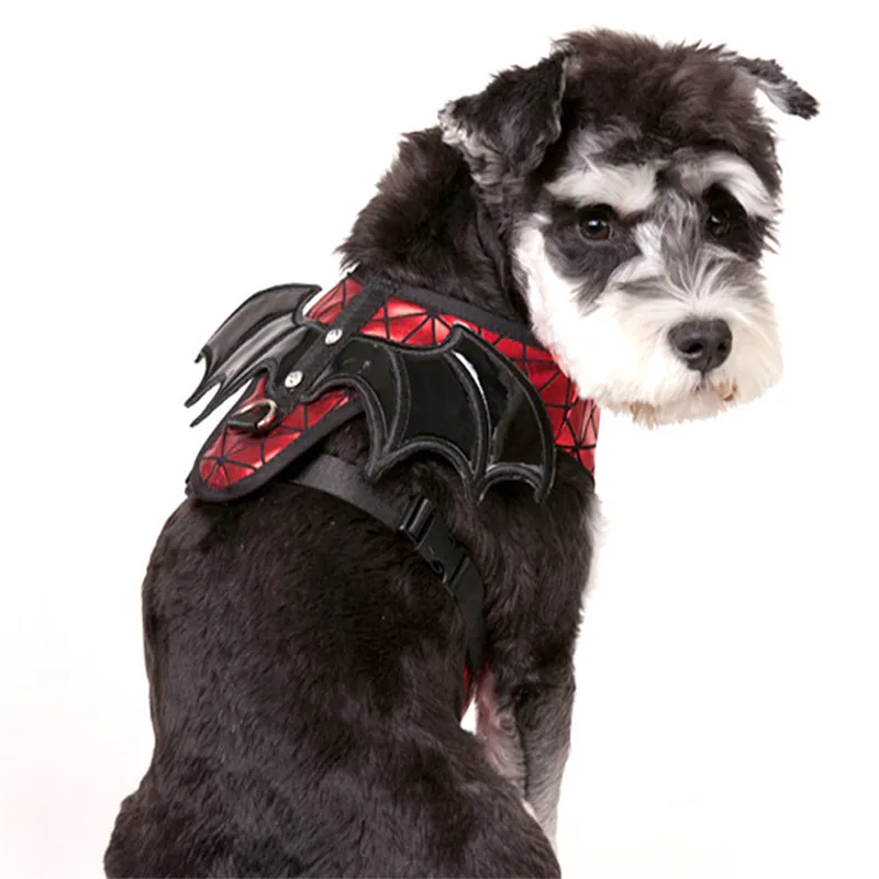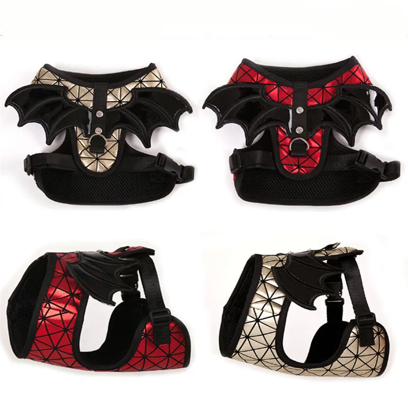 New Cloth Dog Harnesses Comfortable Halloween Individual Bat Wings Harnesses for Small and Medium Size Dog Pet Supplies(red,gold