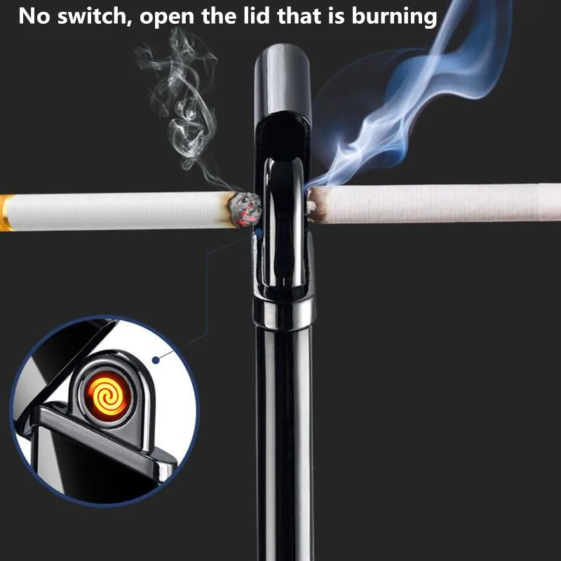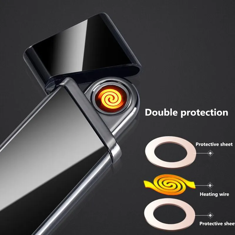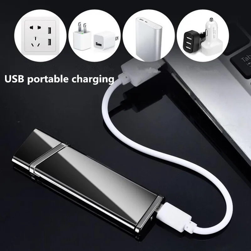 New Creative No gas Slim thinDouble-sided ignition USB Windproof flameless electric cigar Electronic charging Cigarette lighter
