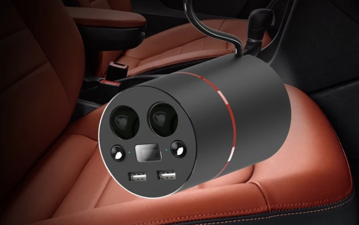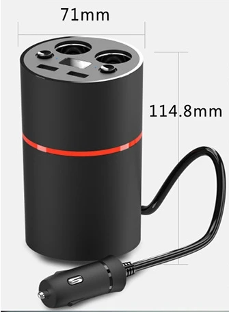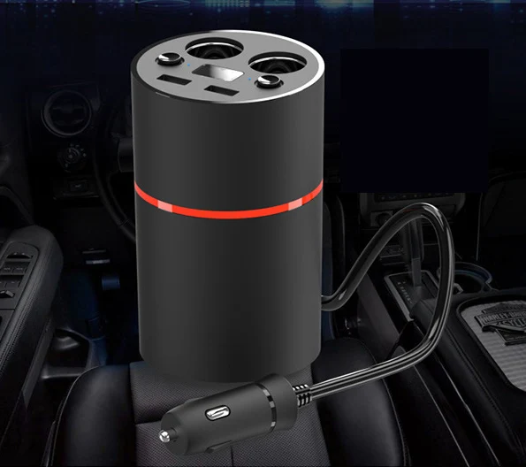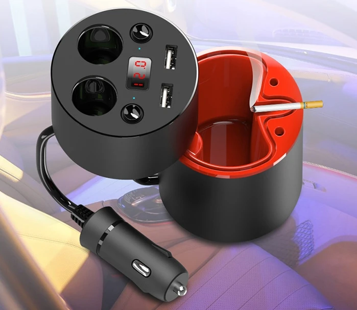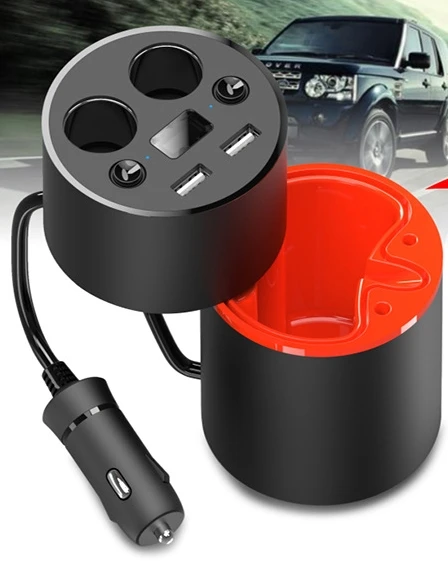 New cup car charger Double usb With voltage display With storage box / ashtray car charger