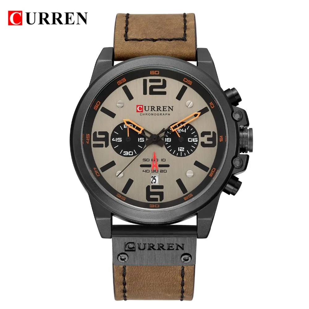 2018 NEW Fashion Casual CURREN Brand Waterproof Quartz Watch Men Military Leather Sports Watches Man Clock Relogio Masculino8285