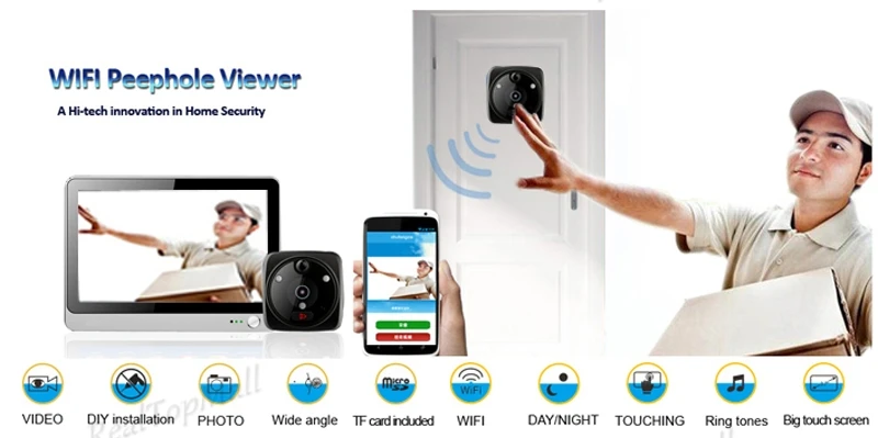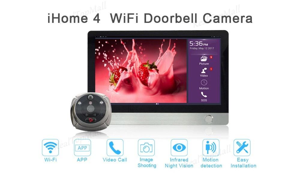iHome4 Android IOS APP Control Wireless Wifi Peephole Video Doorphone Viewer WIFI Peephole Doorbell System