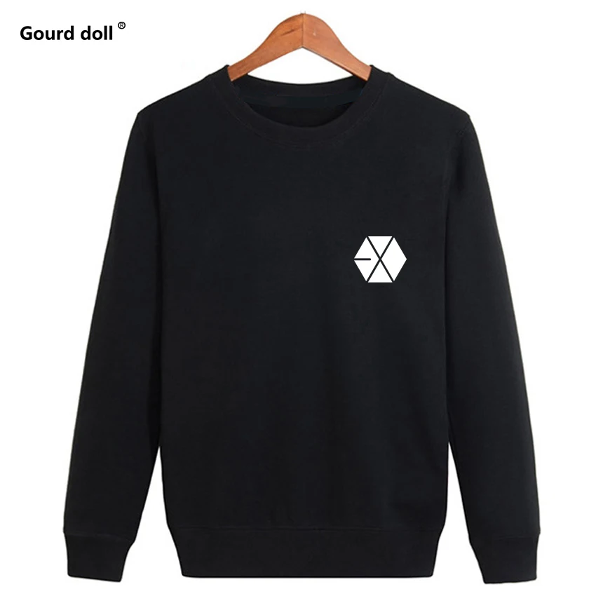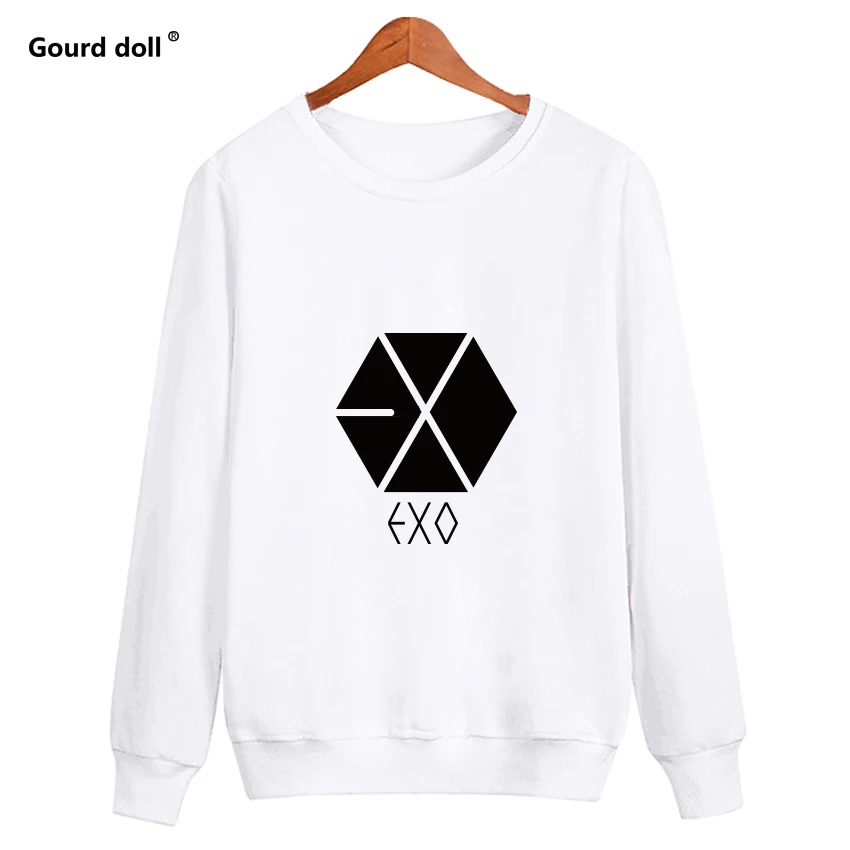 new fashion exo Print Sweatshirt for Women Long Sleeve Casual Women Pullovers Black o Neck Cute Sweatshirt bts Female