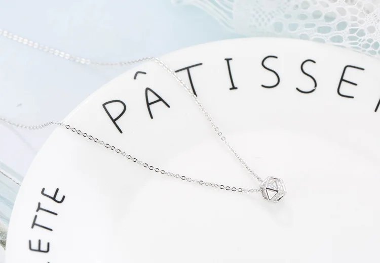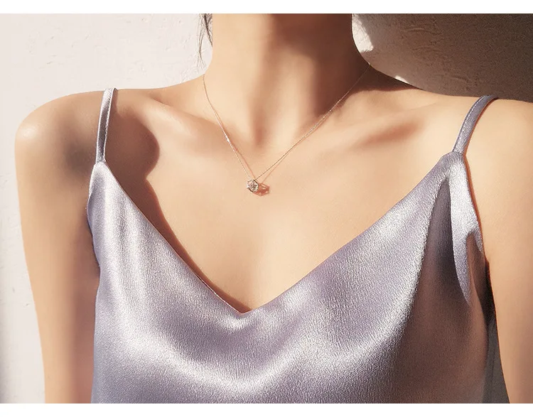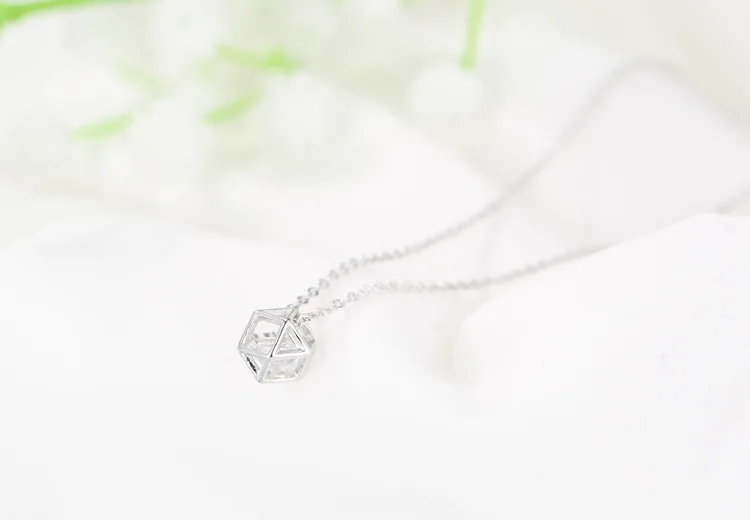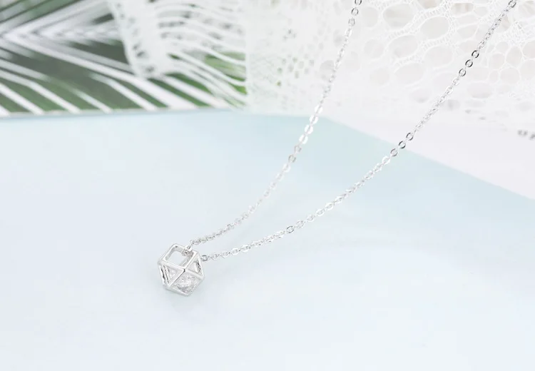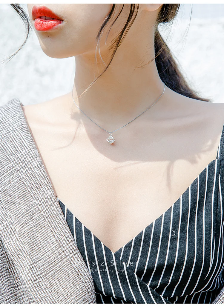 New Fashion Geometric Beauty Flash 925 Sterling Silver Jewelry Simple Crystal Female Clavicle Chain Pendant Necklaces H119