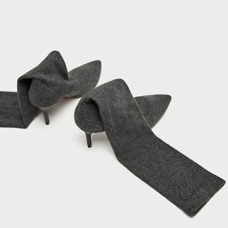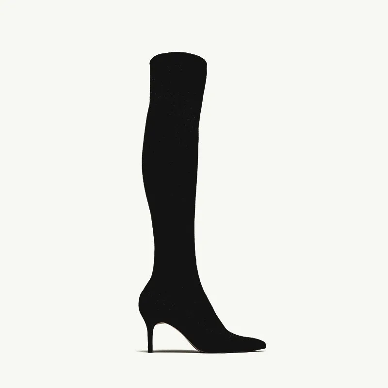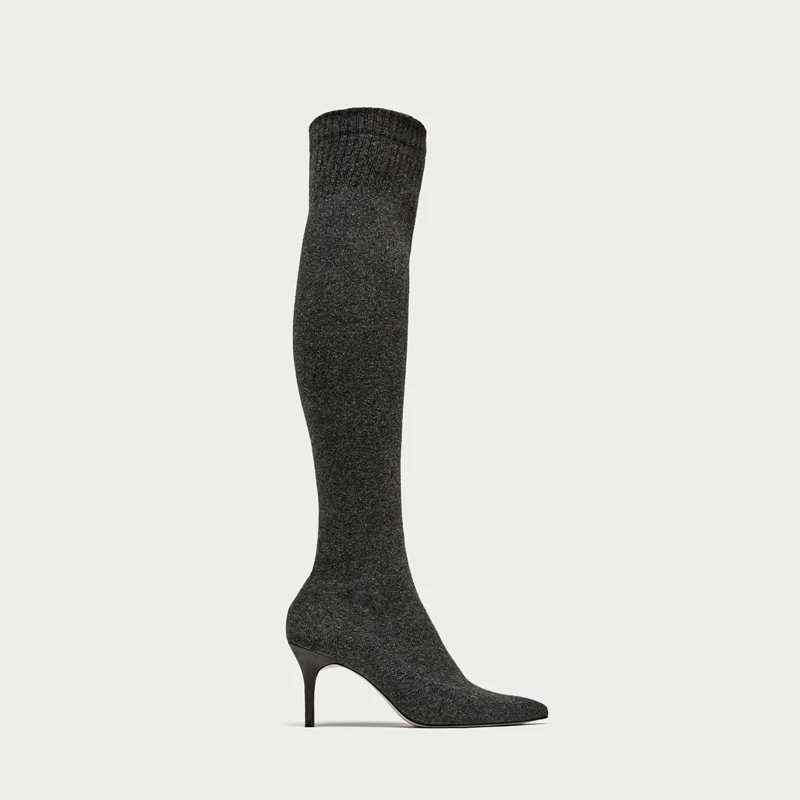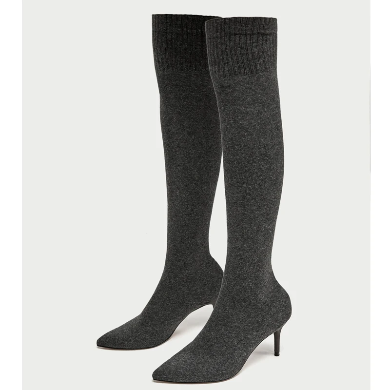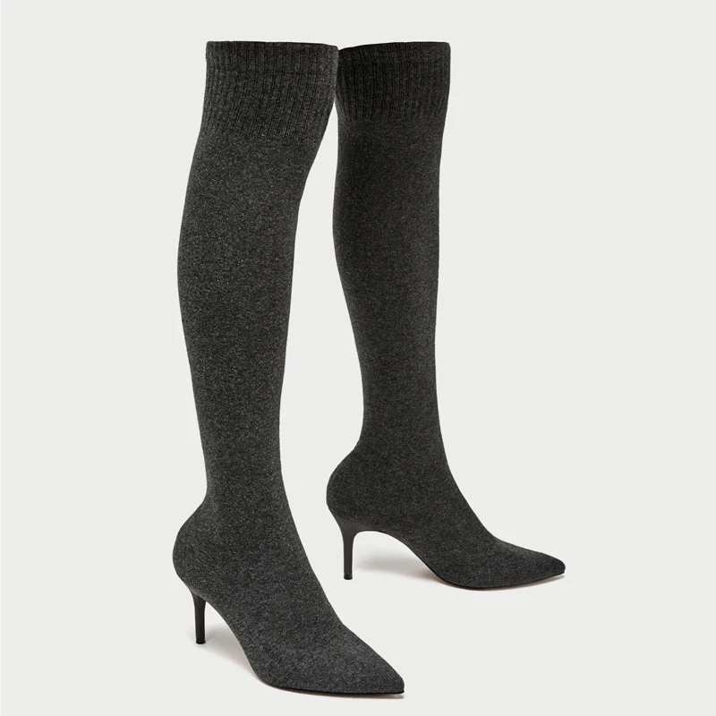 New fashion knit Thin high Boots elegant over the knee female shoes Sexy thin High Heels black dark grey Sock Boots 2018