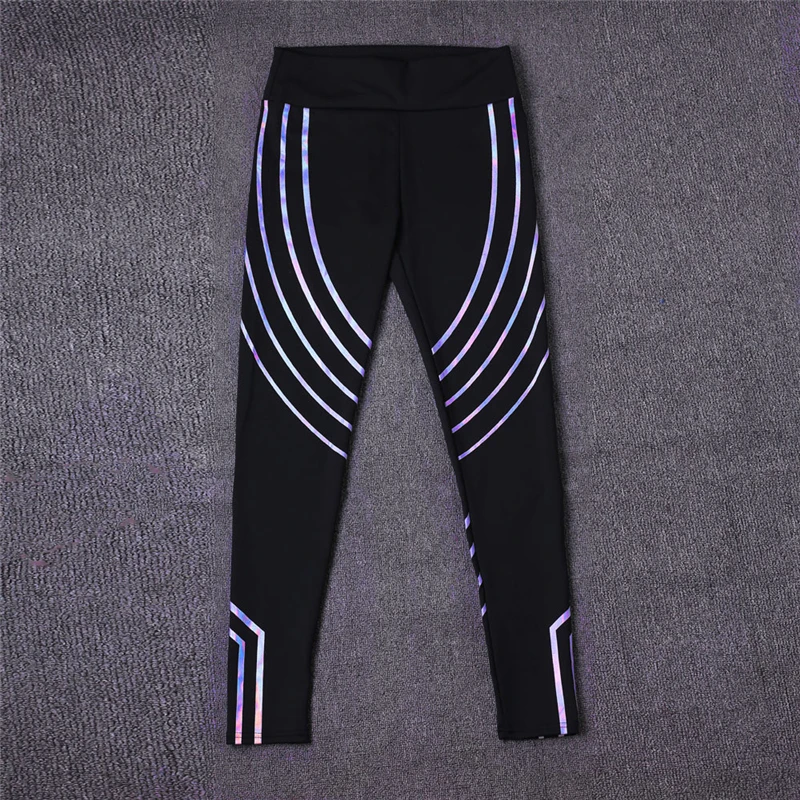 New Fashion Laser Glow in the Dark fitness high waist elastic leggings Women High Waist Fitness Leggings Stretch Pants Trousers