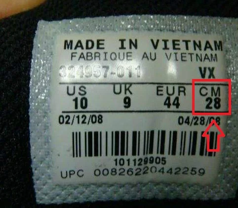 2.Check your shoe tongue,like this one,foot length is 28 cm,choose US size 10.5=Euro size 46 (fit foot length 27.6-28 cm),