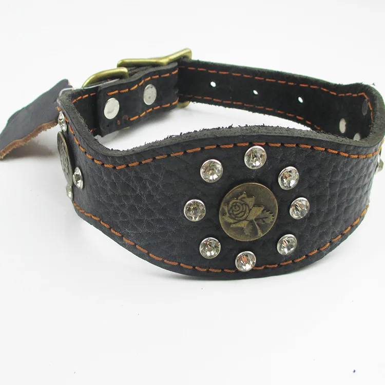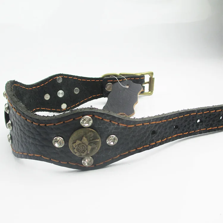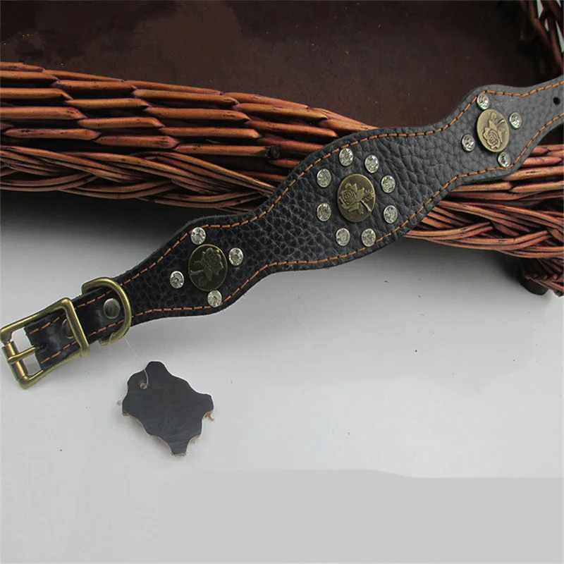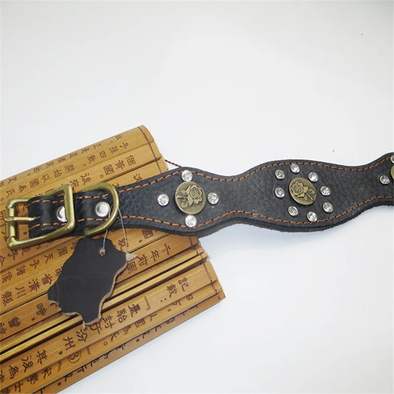 New Fashion Pu Leather Dog Collar Retro National Diamond Necklace for Small and Medium Dog Pet Collar Accessories (color:black)