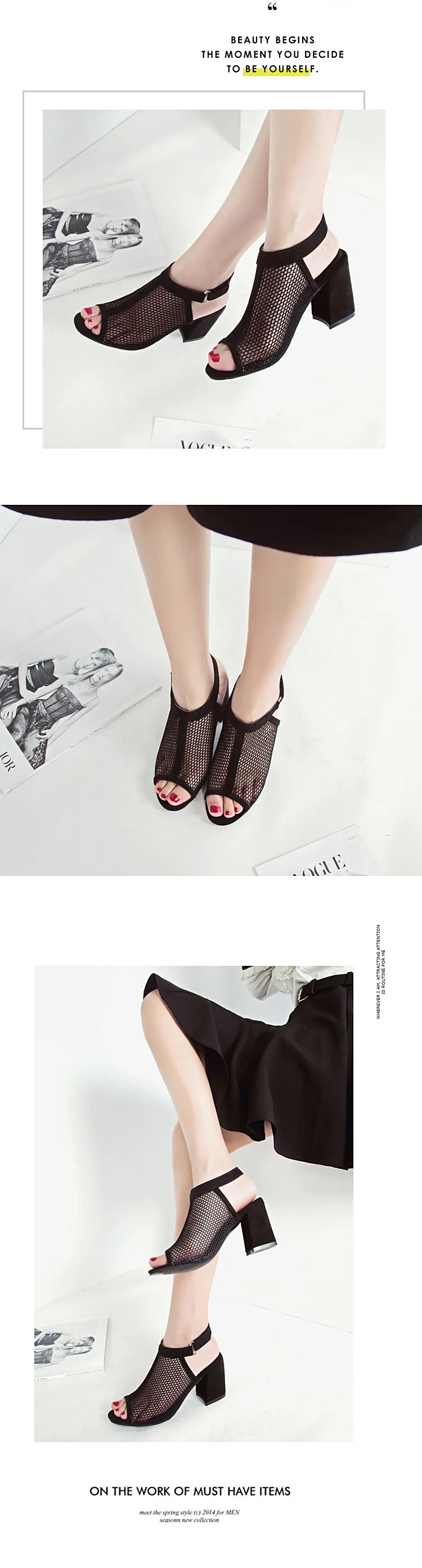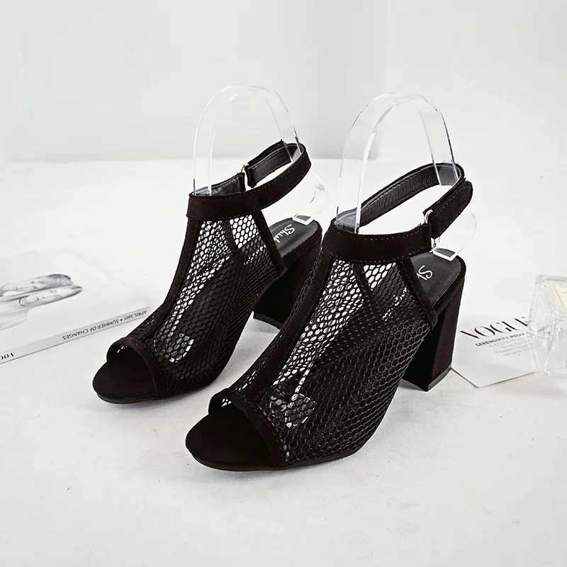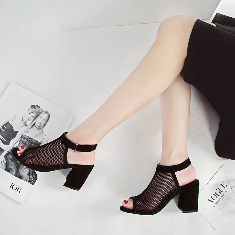 New Fashion Summer Woman Mesh Wild Breathable Hollow Solid Color Fish Mouth Casual Sandals