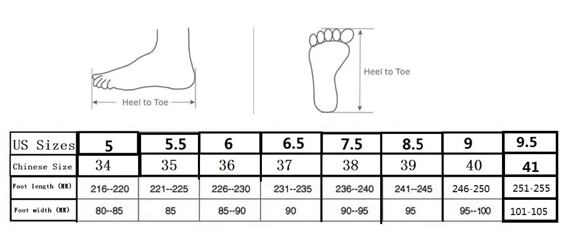 2) Please measure your foot length and read the size information conversion chart carefully to select correct size.