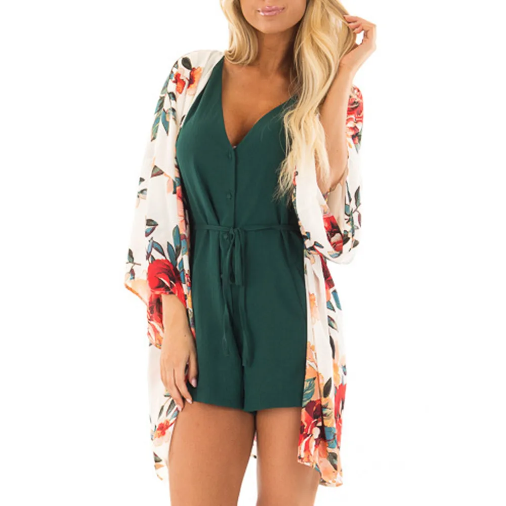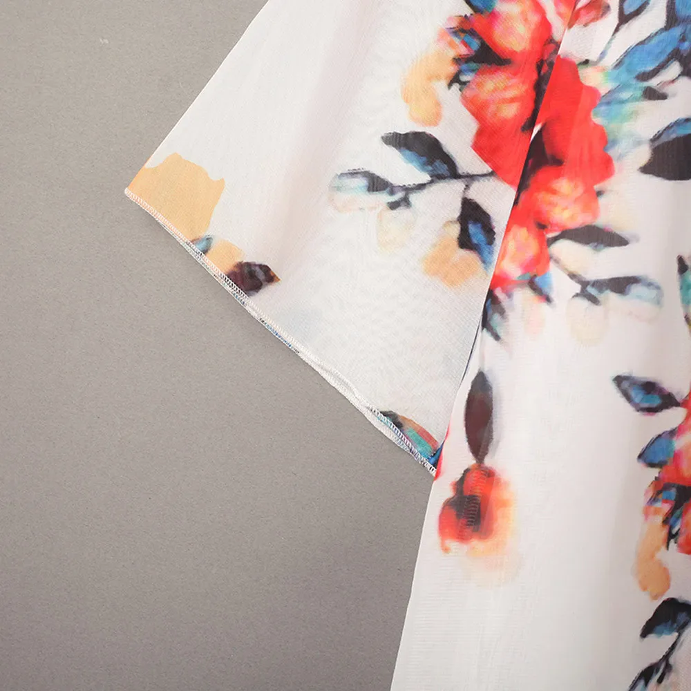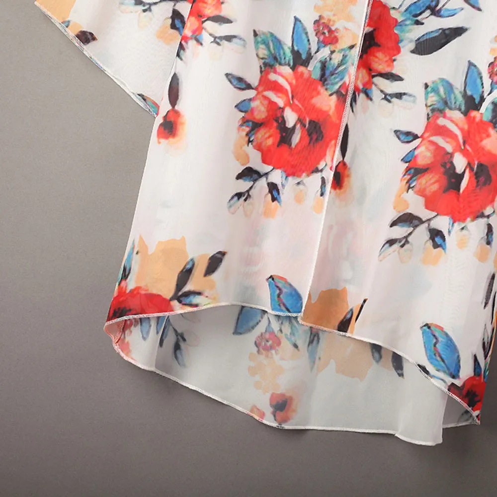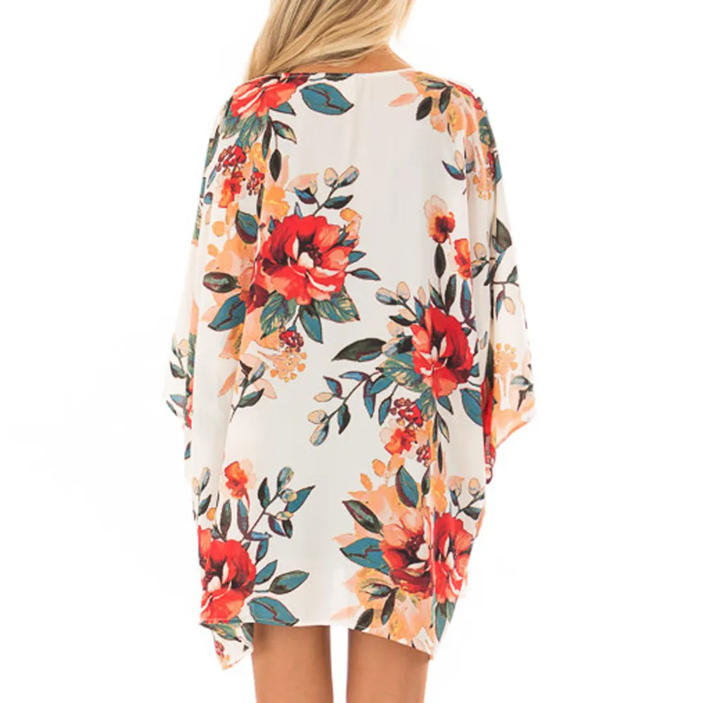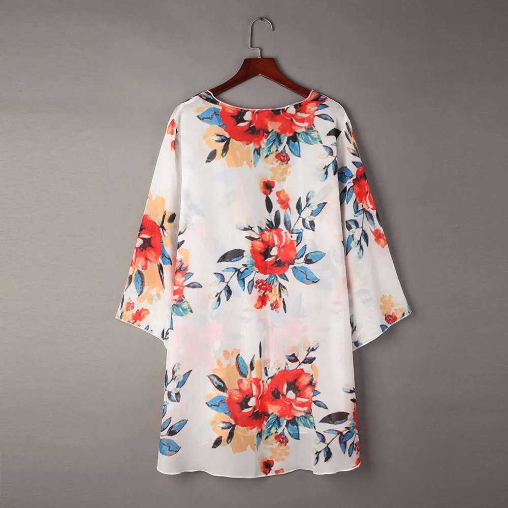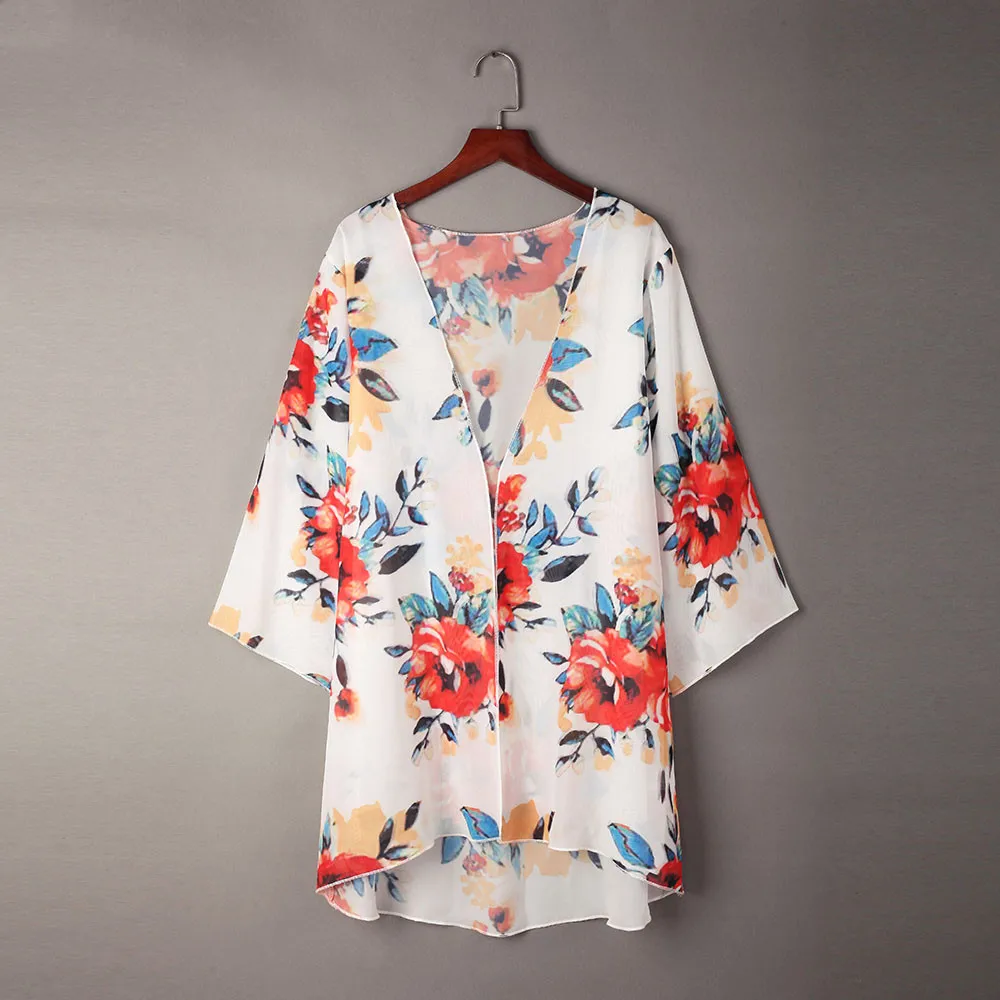 Fashion Womens Chiffon Shawl Print Kimono Cardigan Top Cover Up Blouse Beachwear