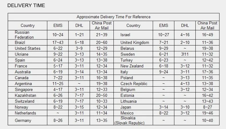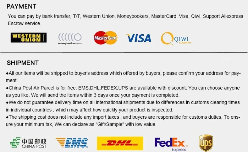 2. If your order is more than 200$,we can(if you want) provide free shipping by EMS/DHL/FEDEX or other express except Africa/South America and some other countries.