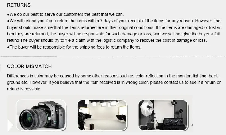 4. We do sell based on reliability and good quality.We have teams to test your ordered products are functioning correctly before they are packed and sent to you.But you do need to confirm your dress size carefully before buying (a size measurement will be show below each items).