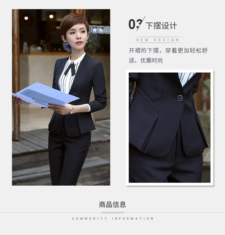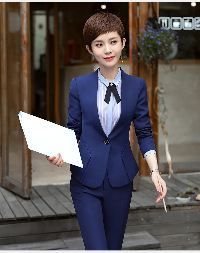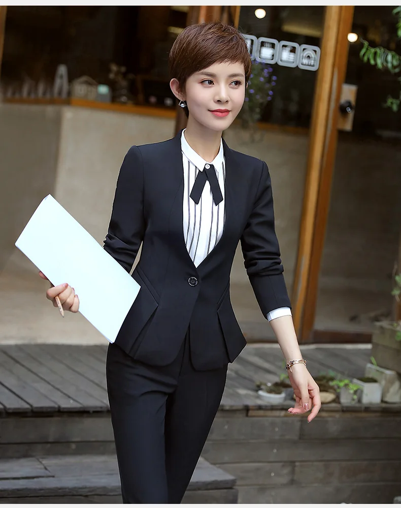New fashion women’s Business suits OL slim work wear office ladies long sleeve blazer pant suits costumes for women with a pants