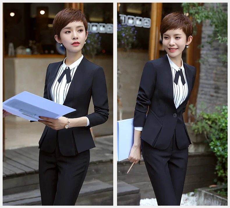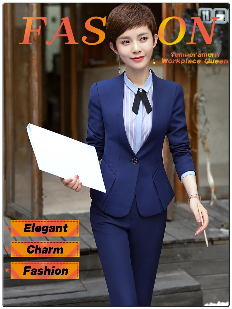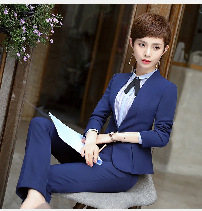 New fashion women’s Business suits OL slim work wear office ladies long sleeve blazer pant suits costumes for women with a pants