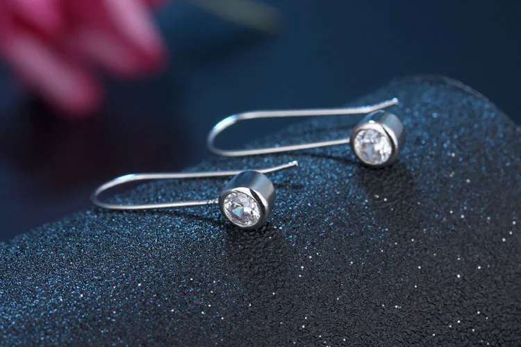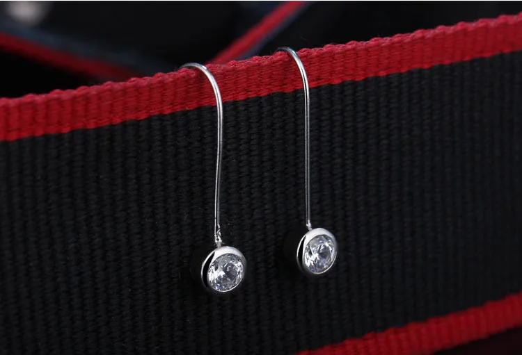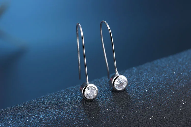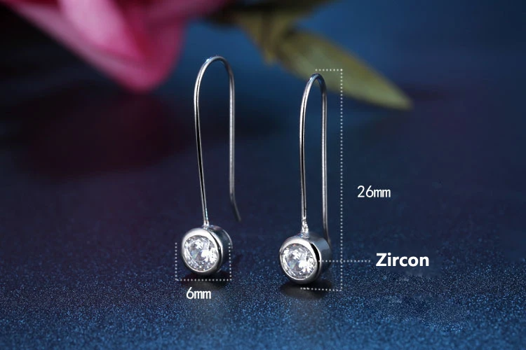 New Fashion Zircon Round Earring Long Silver Earing For Women 2018 Jewelry Wholesale Simple oorbellen boucle d’oreille femme