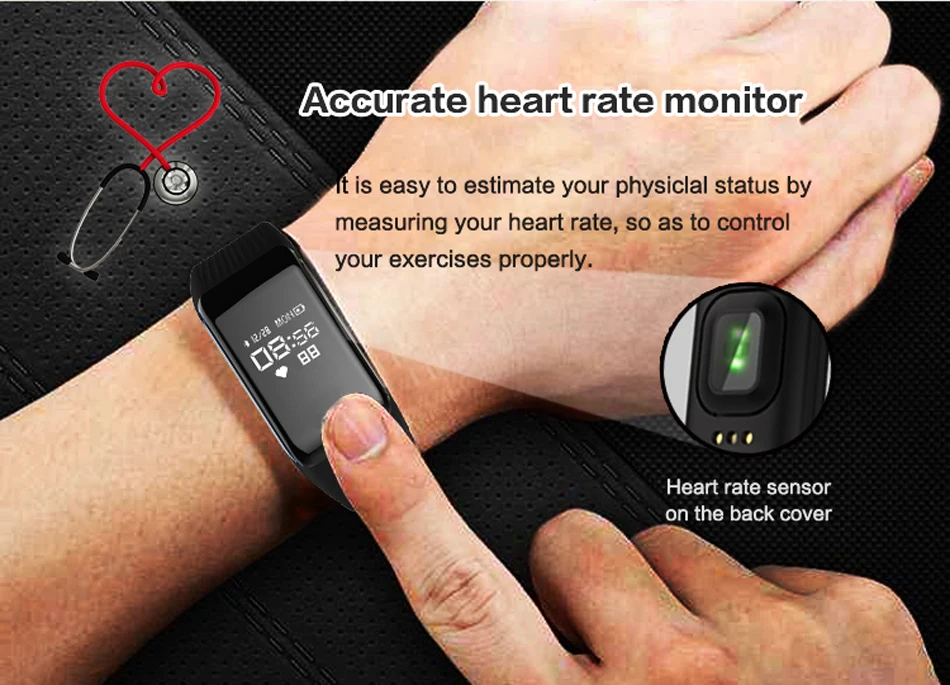 New Fitness Tracker Smart Bracelet Real-time Heart Rate Monitor down to sec Charging 2 hours Useing 1 weeks waterproof Watch