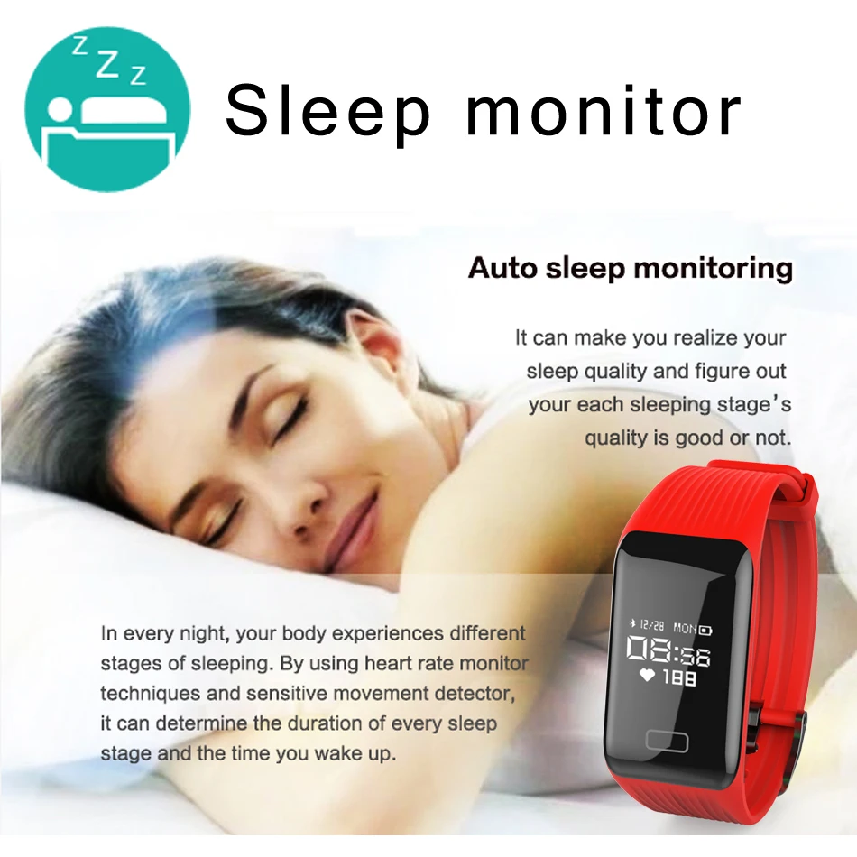 Sleep monitor – Synchronize your sleep time every night and analyze your sleep quality through the sleep trend graphics; Accurate monitor overall effective sleep time and movements every night, you can better understand your sleep quality.